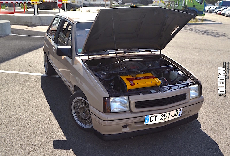 J’adore ce genre de caisse… Et Alain aussi d’ailleurs ! Vous savez, ces caisses qui ne payent pas foncièrement de mine. En même temps, une Corsa A… Ya pas de quoi se méfier. Même si elle est plutôt propre, et posée sur de la BBS… Puis ce bruit… Une ligne un peu libérée… C’est tout non ? Non, cette Corsa, elle est vraiment violente !