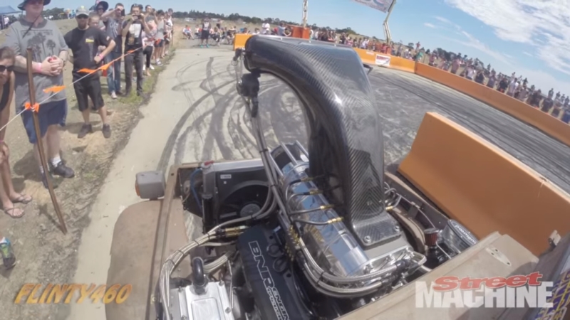 Et justement petite interrogation écrite : Quel est l’endroit sur la planète ou l’on peut trouver à la fois des FJ40, des V8 et des bouseux assez marteaux pour marier les deux ? Vous avez deux heures. Un indice : On n’est pas aux USA. Donc comme je vous le disais a part la carrosserie et quelques bricoles il n’y rien de Land Cruiser la dedans. Mais un châssis entièrement fait maison et un bon gros V8 estimé à environ 2000 cv. Durée de vie des pneus : 1mn30 !