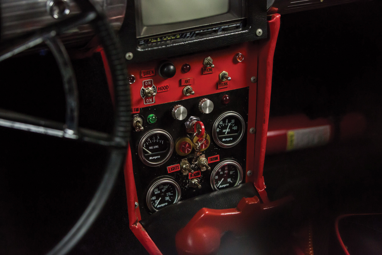Pour l’histoire, le modèle original, issu de la Futura a été vendu aux enchères en 2012 pour 4.200.000 $… Belle culbute ! Et le la Batmobile qui défile devant vos yeux est une réplique construite en 66 par Jim Sermersheim, un ingénieur bricoleur et fan de la série. Il est parti d’une Ford Thunderbird de 58, motorisée par un V8 de 351 ci. Elle est identique à l’originale, si ce n’est que sa caisse est en tôle et non pas en fibre. Tous les gadgets sont bien présents et totalement fonctionnels. Après avoir fait le tour des Etats unis et du Canada au volant de sa Batmobile, Jim est vend sa voiture à… Georges Barris en personne qui est impressionné par la qualité de la réalisation. A tel point qu’il a pris la peine de la reconnaitre officiellement comme une Batmobile originale, faisant d’elle celle qui sera alors la Batmobile #5.
