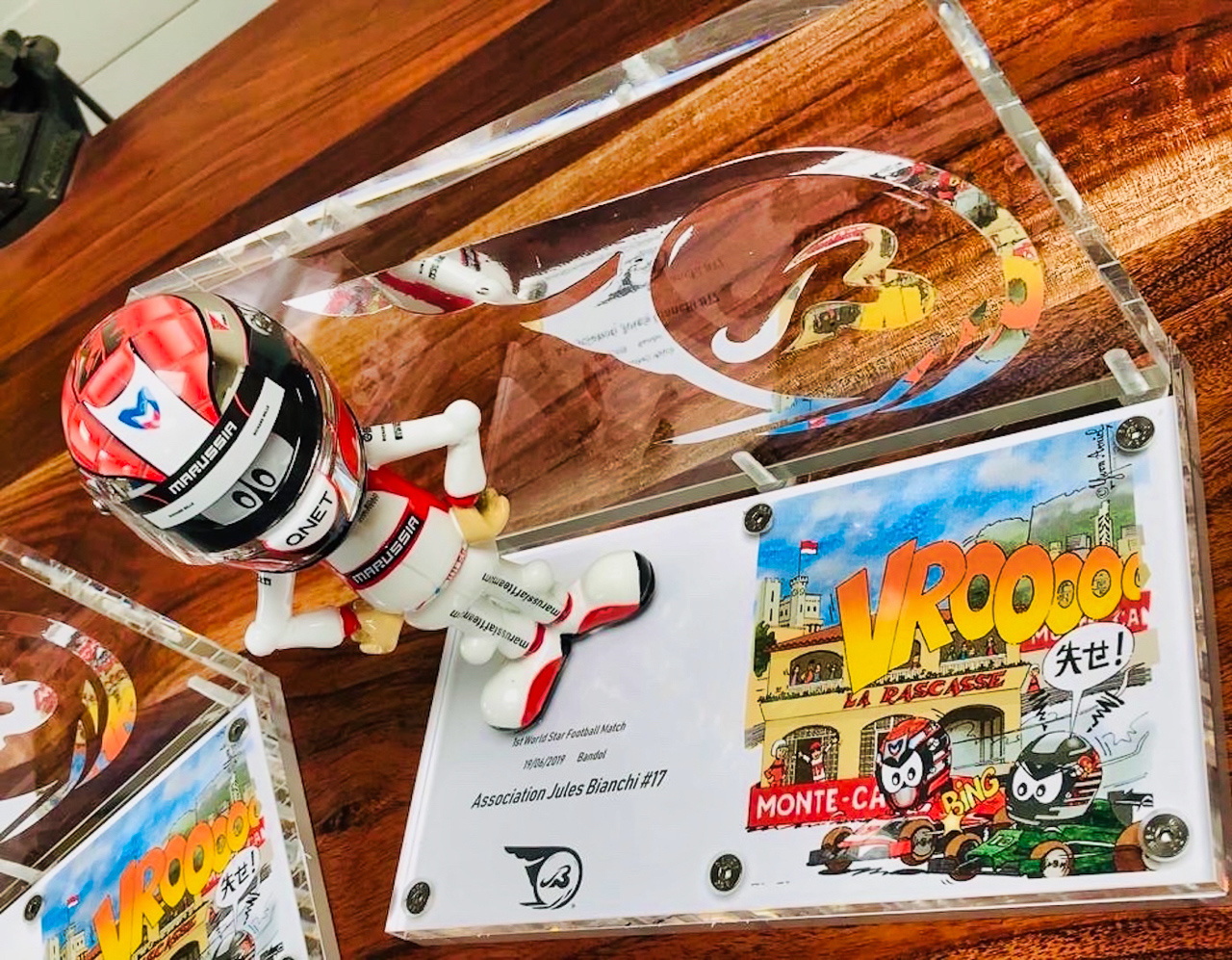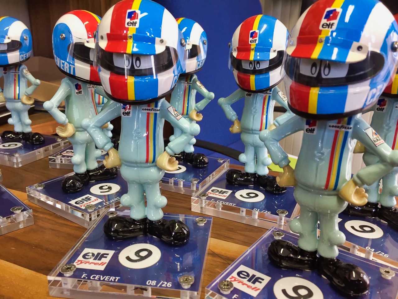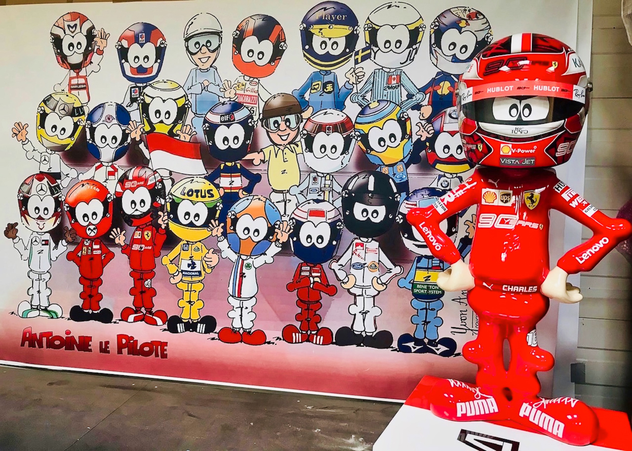 Je travaille principalement avec 2 personnes qui sont très importantes pour le développement d’Antoine le Pilote. Gregory Ronot, lui-même excellent illustrateur, qui est responsable de la mise en couleur et mise en page des Albums. Ainsi que Fernando Grande, responsable de la fabrication des figurines et maintenant des trophées et des statues qui sont aussi du ressort de Philippe Marie de la Société Marie 3D. Philippe est à l’origine de l’idée de créer des Statues de Pilotes de Course.