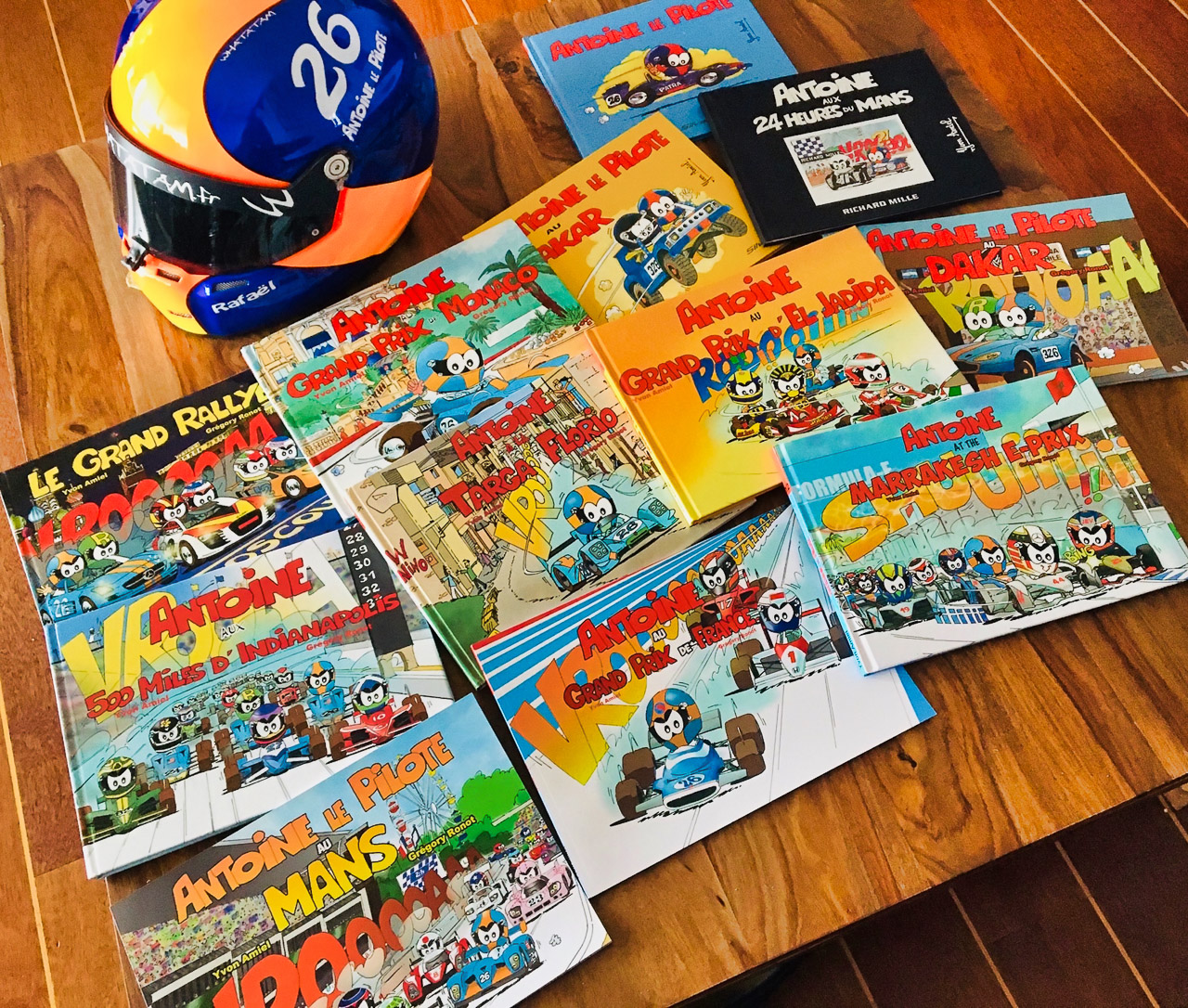 Mon activité actuelle tourne autour d’Antoine le Pilote, 1er héros de course automobile, créé en 2009, dont les aventures sont dédiées au partage de la passion entre les générations. 12 Albums illustrés ont été publiés à ce jour. Le 13ème « Antoine au Grand Prix de Monaco » est sorti pour Noël 2020 et publié par les Éditions Gilletta, bien connues dans le sud de la France. Toute l’activité d’Antoine le Pilote est décrite sur le site web www.antoinelepilote.com que je vous invite à découvrir…