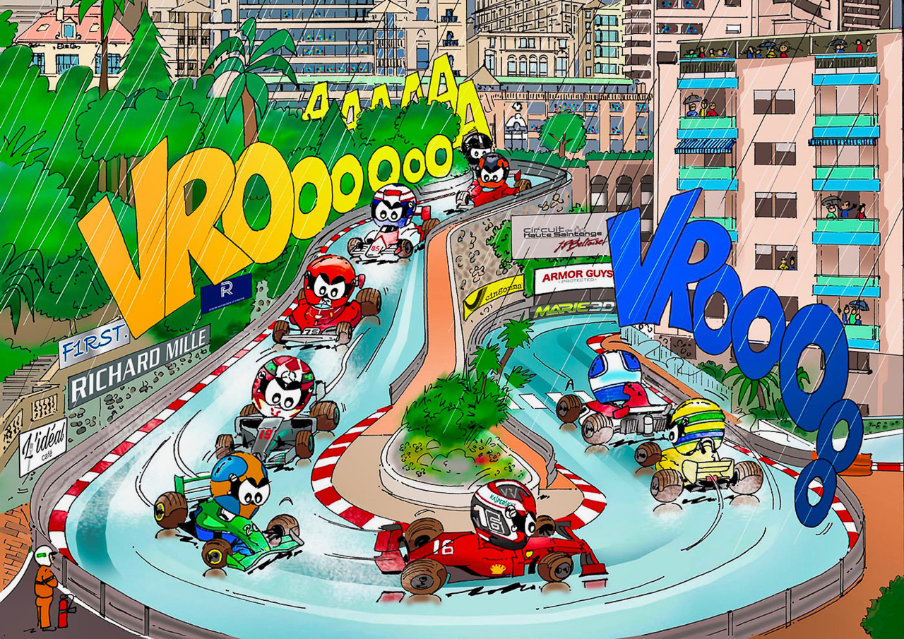 Je suis passionné de course automobile et de BD depuis mon plus jeune âge… J’ai publié mes premiers dessins humoristiques dans Auto Hebdo à l’âge de 16 ans ! De fil en aiguilles, j’ai eu la possibilité de développer beaucoup de produits dérivés de mes dessins : Les t/shirts pour les pilotes F1 avec Stand 21, le célèbre équipementier. Les figurines de pilotes dont celles sous licence de la fondation, rendant hommage à Ayrton Senna. J’ai dessiné pour plusieurs magazines automobiles et pour plusieurs agences de communication.