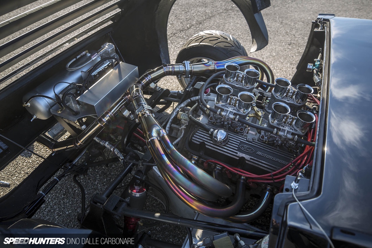Rapidement, les spectateurs vont se rende compte que des détails ne collent pas… Le V8 Ford Motorsport et l’habitacle qui ressemble quand même vachement à celui d’une GT40. En effet, la base est là. Pour réussir son coup, Wataru a donc trouvé une réplique GT Developments, une Ford GT40 replica. Voilààààà, tout le monde est rassuré, aucune supercar mythique n’a été sacrifiée dans l’histoire.