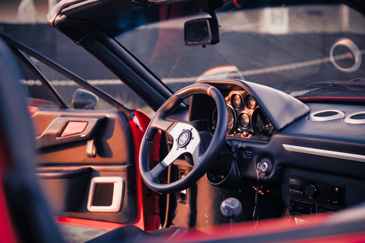 Dans l’habitacle, on garde le style 80’s… mais avec cuir, carbone, alcantara, sono et même marbre pour le pommeau de vitesse ! La finition est digne du nouveau pedigree de l’engin et bien loin de ce qu’elle était lorsqu’elle sortait de Maranello. Sachant que quasiment tout est réalisable sur mesure et en fonction du paquet d’€ qui va avec.