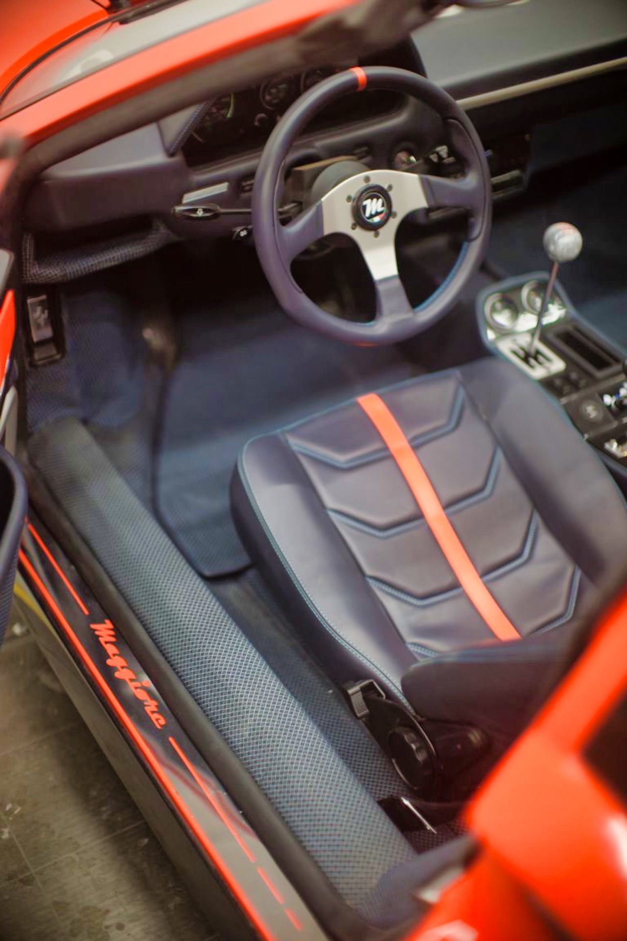 Le châssis se retrouve refait à neuf et passé en mode racing avec des trains roulants en alu maintenus par des suspensions de compet’ réglables dans tous les sens et développées spécifiquement par Koni. Le freinage a pris du grade avec des disques de 280mm mordus par des étriers quatre pistons. Il est maintenant signé Brembo. Il se cache derrière des jantes Maggiore 3 parties en 8 et 10 x 17″ reprenant le dessin historique des sportives de Maranello.