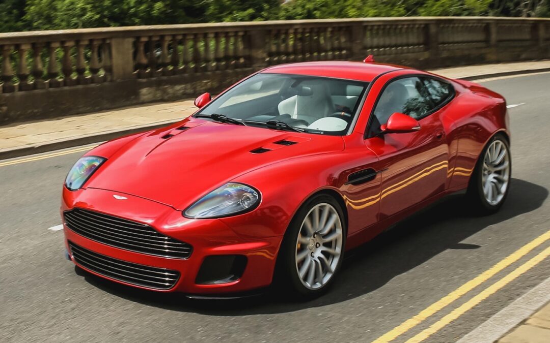 Mais l’histoire ne s’arrête pas là… Ian en veut plus. Le 1er mars 2001 au salon de Genève, Aston présente la Vanquish, une sorte de DB7 ++. L’affiliation entre les deux voitures est flagrante, mais quand la DB7 mise tout sur son élégance, la Vanquish y rajoute la bestialité. Son look est phénoménal, musclé, vif, impressionnant, sans pour autant renier l’ADN de la marque. Surtout que l’engin joue les missiles sol-sol. Son châssis est spécifique, en alu et carbone, il a été développé en partenariat avec Lotus. La caisse est en alu. Le V12 de la DB7 est revu chez Cosworth et sort mainenant 466 ch. La boite 6 est soit manuelle, soit à commandes au volant. Le freinage est signé Brembo. L’aéro est travaillée et adopte un fond plat pour créer un effet de sol. Même si malgré tous les efforts elle reste lourde (plus de 1800 kg), avec sa Vanquish, Aston se remet dans la course face à Ferrari, capable de mettre la fessée à la 456 GT d’autant plus que la belle anglaise est disponible en strict deux places ou en 2+2 en option.
