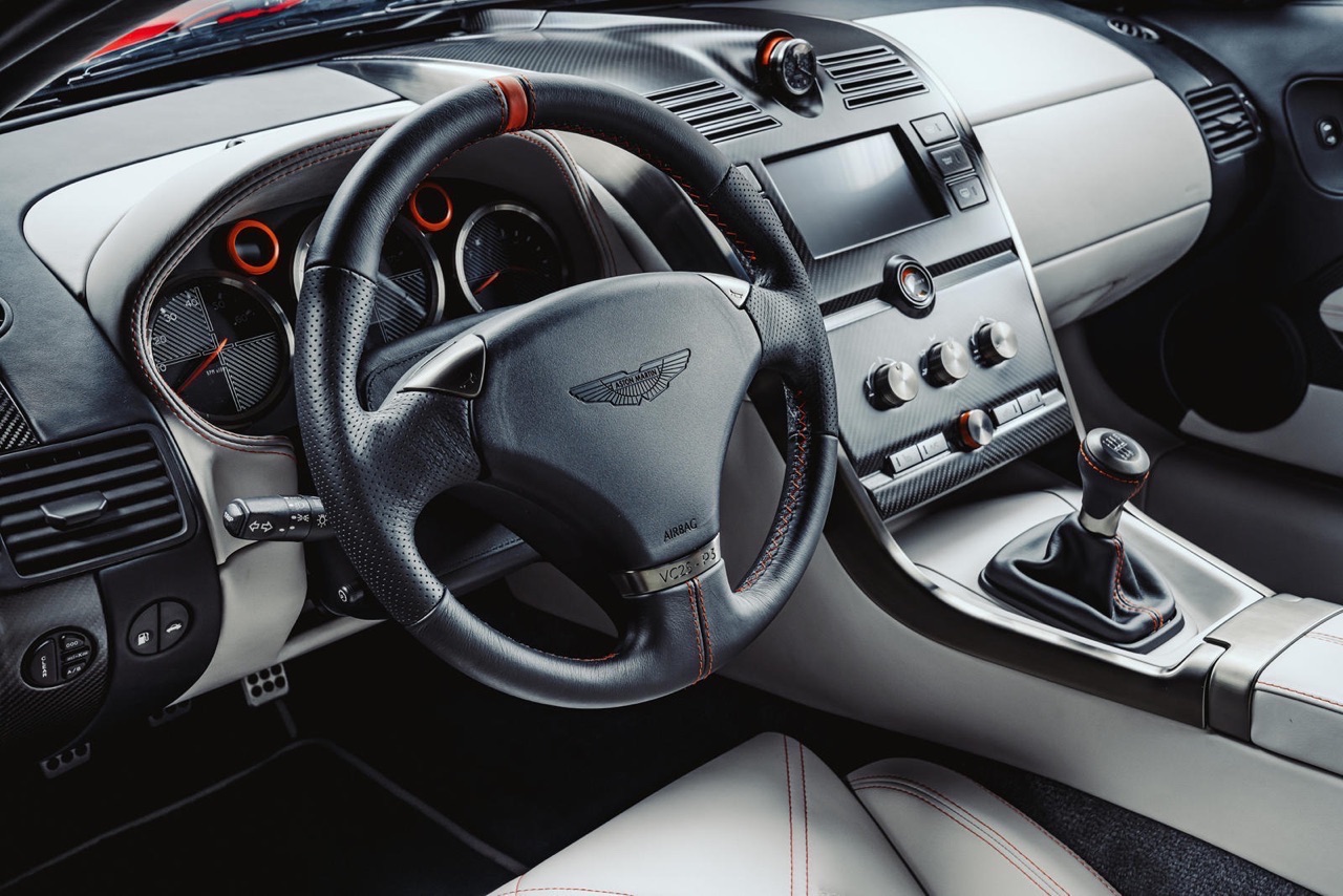 La calandre a pris du volume pour mieux gaver le V12 en air frais. Le pare-choc gagne une lèvre inférieure. Les jantes en 19″ ont un nouveau dessin. Le châssis embarque ce qui faisait le pack SDP. Le V12 reçoit de nouvelles culasses, des chambres redessinées, de nouveaux injecteurs et une nouvelle carto. Il chante à travers une ligne inox qui lui offre probablement le plus beau son du marché. Les roues arrière doivent maintenant composer avec 528 ch et 577 Nm. La gestion de la boite a été améliorée, plus rapide mais plus souple, elle compte désormais un embrayage renforcé. Le rapport de pont est raccourci et un différentiel à glissement limité vient lui porter du renfort. Ainsi armée, la Vanquish S passe la barre des 320 km/h et va directement chasser sur les terres de la 575 Maranello. Sa production va s’arrêter en 2007 après 2578 voitures produites (1492 Vanquish et 1086 Vanquish S). Elle est la toute dernière Aston assemblée à 100% à la main. Forcément les puristes la considèrent comme la dernière vraie Aston… blablabla, voyez le discours habituel. Entre temps, la DB7 a laissé sa place à la DB9. La DB9 va évoluer en DBS et en 2012, une Vanquish va faire son come back. Enfin tout ceci est une autre histoire…