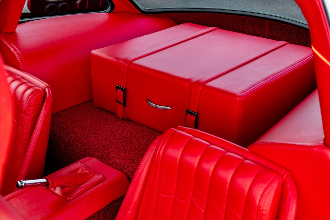 Cette 300 SL a été assemblée chez House of Hotrods, un speedshop basé à Mansfield au Texas et qui, comme son nom l’indique, est spécialisé dans le custom et le hot rod. Partis d’un châssis tubulaire, ils y ont greffé les trains roulants d’une Corvette C4, maintenus par des coilovers réglables AFCO, un freinage Wilwood et une direction Flaming River. Pour le reste, un V8 LS1 a aménagé entre les roues avant, accompagné d’un gros radiateur alu, d’une admission directe et d’une ligne sur mesure qui se termine sur deux silencieux Magnaflow. Il déverse sa haine sur les roues arrière via une boite 6 manuelle Borg-Warner aidée par un DGL Dana44.