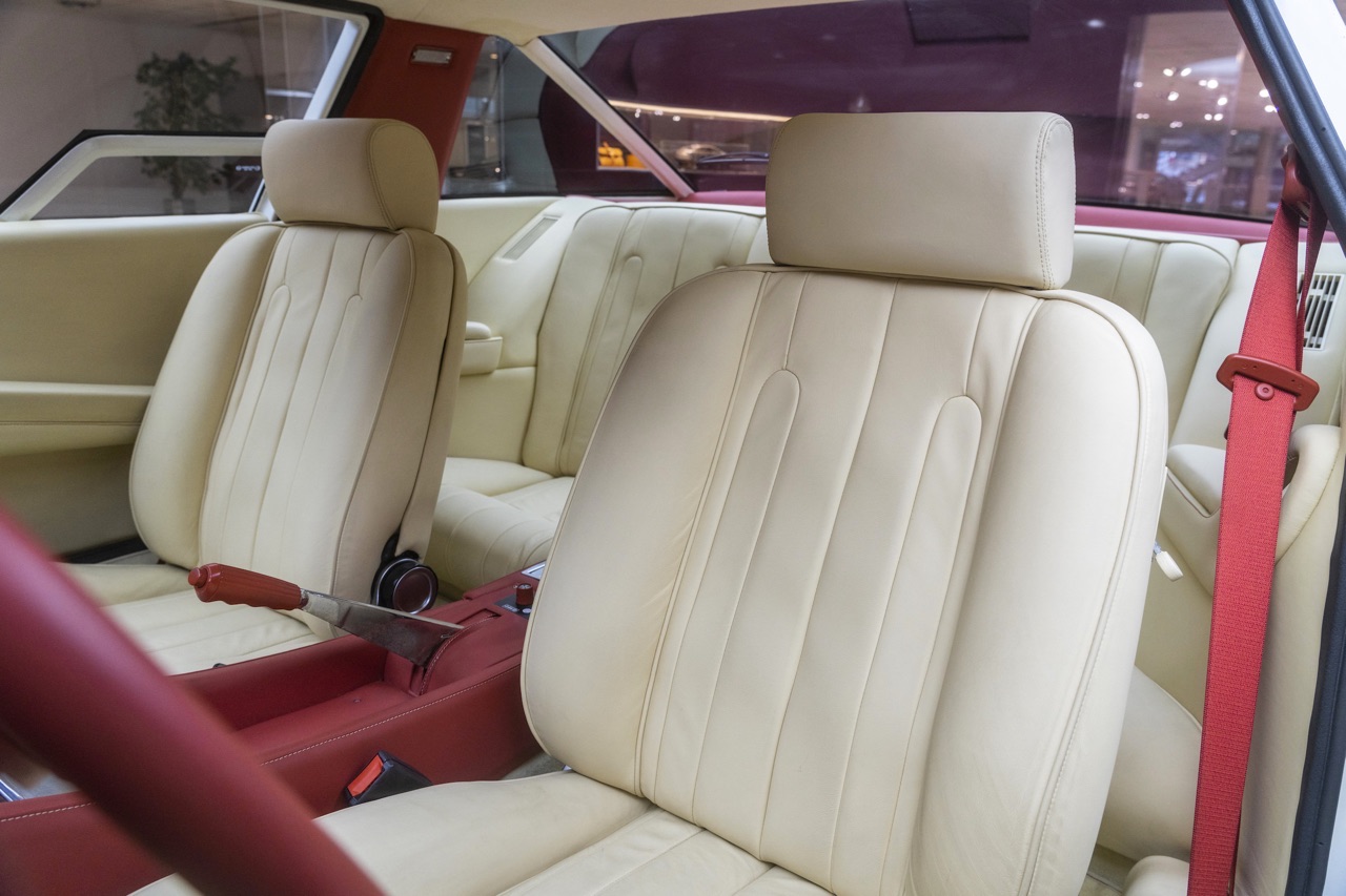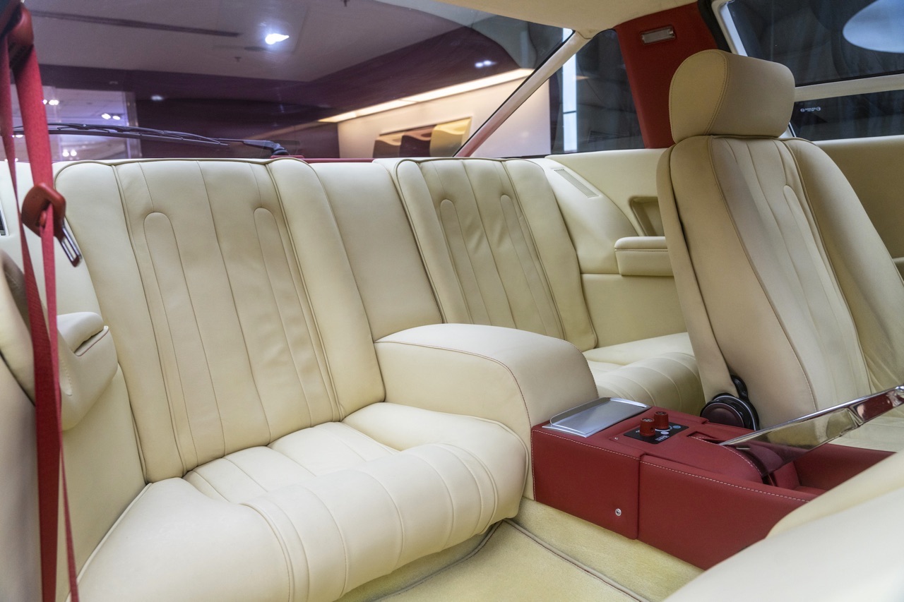 Le designer va récupérer une Ferrari 400i. Son châssis ne change pas, tout comme le V12 gavé à l’injection mais complètement bridé dans tous les coins pour afficher 315 ch. Ajoutez lui 1T700 et une boitoto d’origine GM qui avait du mal à encaisser les régimes du V12 et vous obtiendrez en fait, une machine à cruiser, pépouze, le coude à la portière.