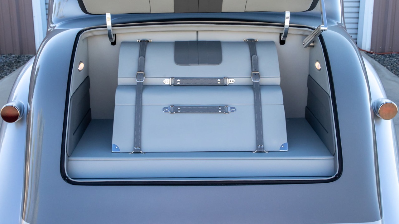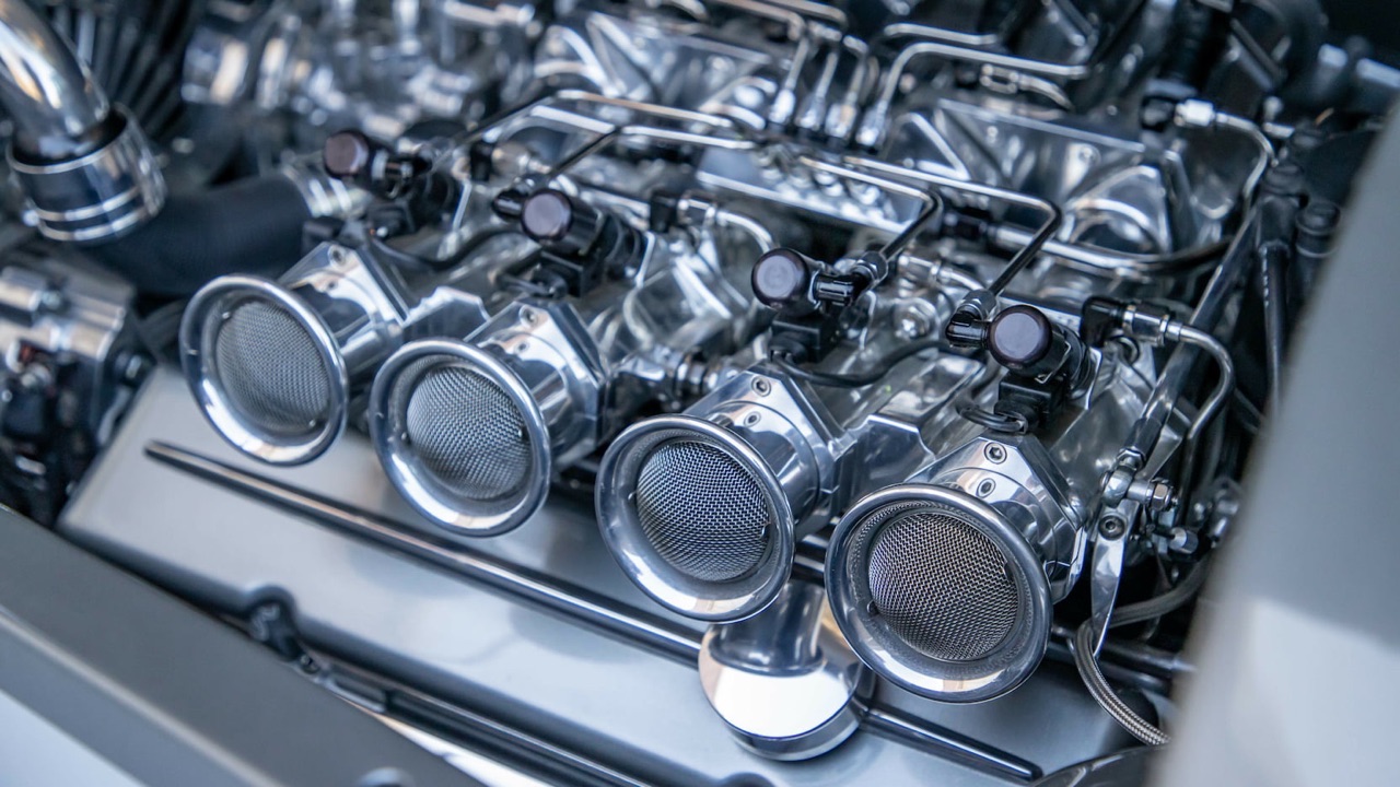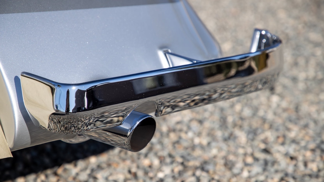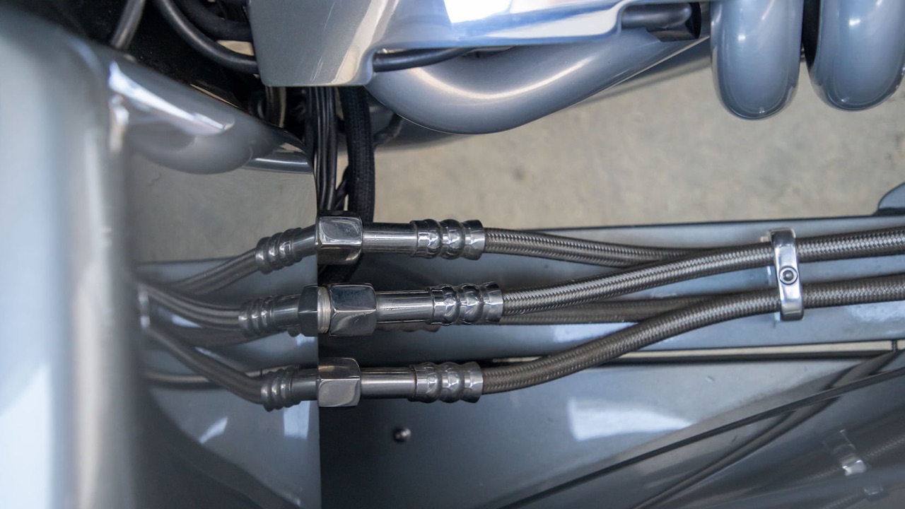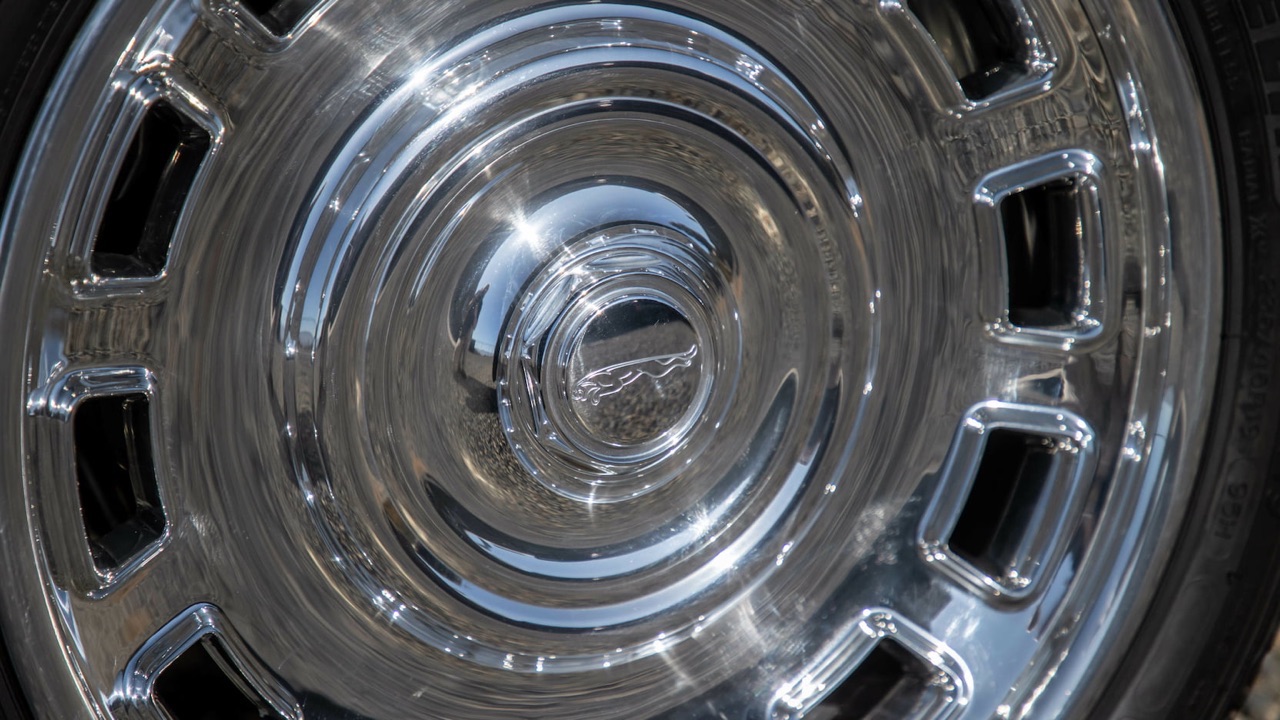 Du coup, notre anglaise est devenue la seule et unique MkV coupé à portes suicides. Tout a été repensé et modernisé. Le châssis a été réalisé sur mesure, et tout le train avant a été emprunté à une Mustang 2 avant d’être chromé ou poli. La direction est moderne et assistée, les suspensions sont confiées à des airbags Airlift et le freinage est maintenant à disques. L’ensemble est posé sur des jantes chromées en 19″, réalisées elles aussi sur mesure, et reprenant le dessin des jantes originelles.