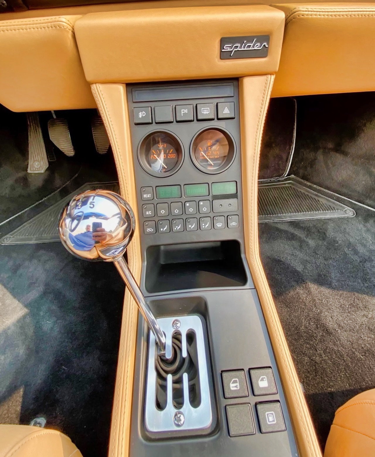 Oui, la Ferrari 348 Spider c’est un concentré de plaisir, l’explosion des sens. Visuel ou encore sonore avec la garantie du frisson dès que vous passez en mode pied tôle. Mais attention, le frisson du bonheur, pas celui de la peur. Pour ne rien gâcher, celle que je vous ai trouvé pour décorer cet article, elle se la joue classe à Dallas, vêtue d’une robe noire pour mettre ses lignes en valeur et, pour ne rien gâcher, chaussée en Speedline de 18″ enrobées de Pirelli P Zero de 235/40 et 285/35. On rajoute la sellerie cuir crème et la ligne inox pour laisser le V8 chanter en live…