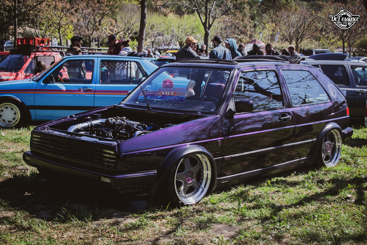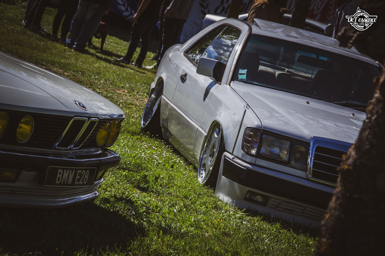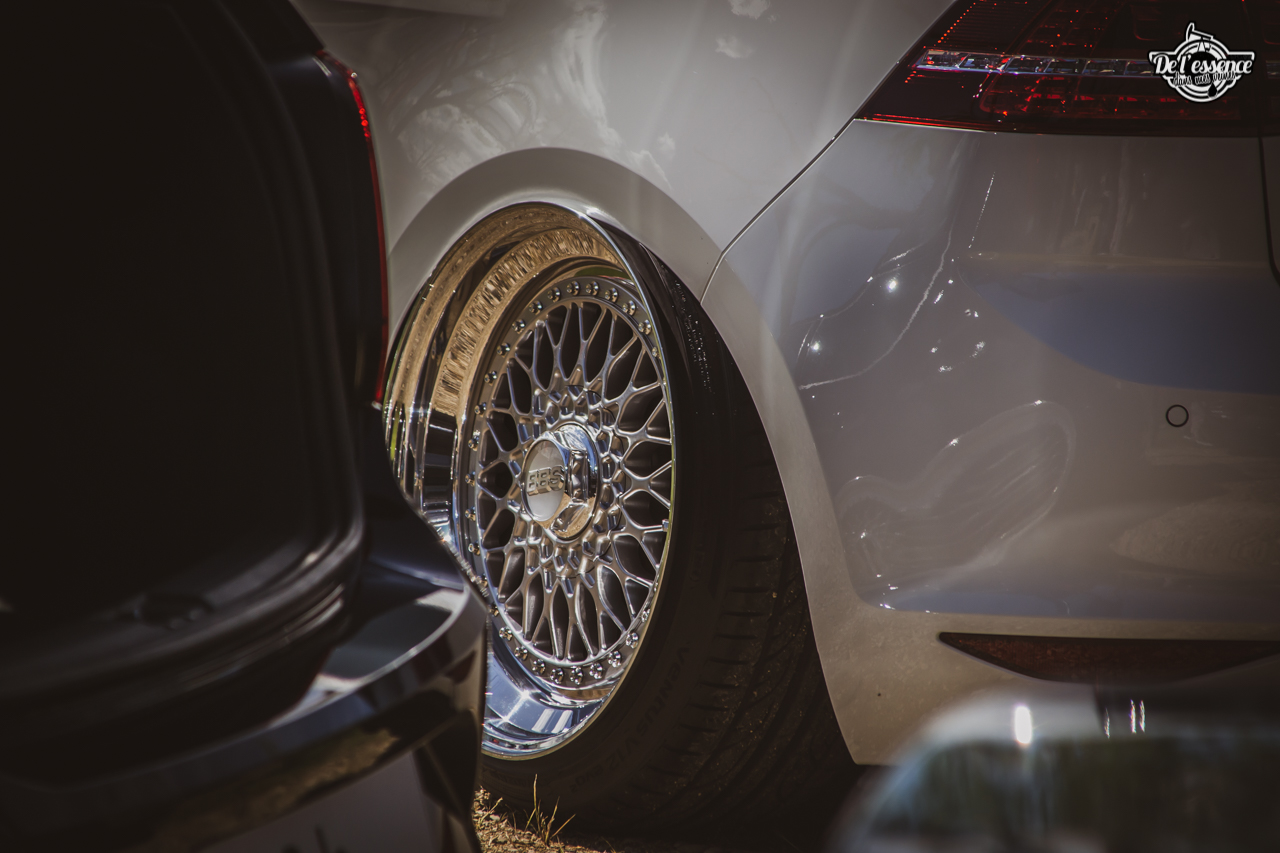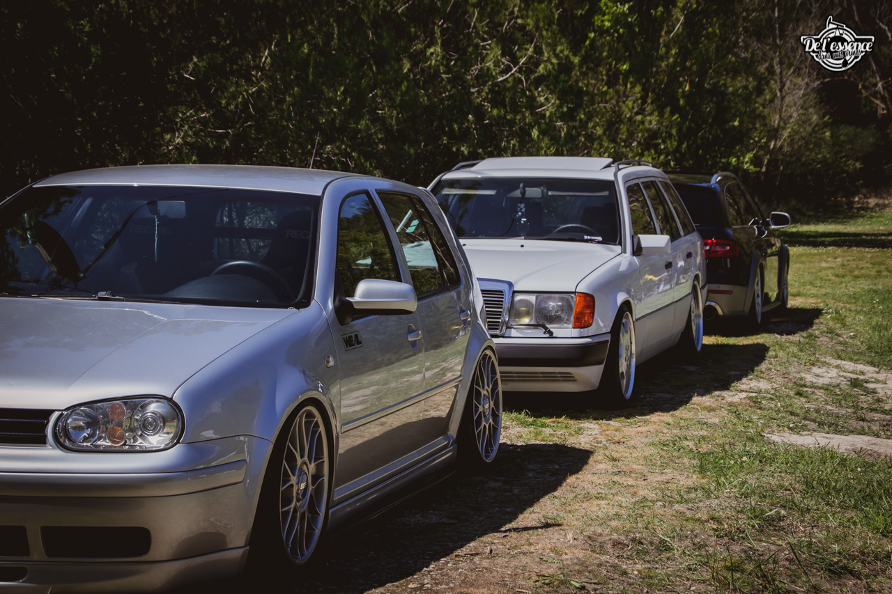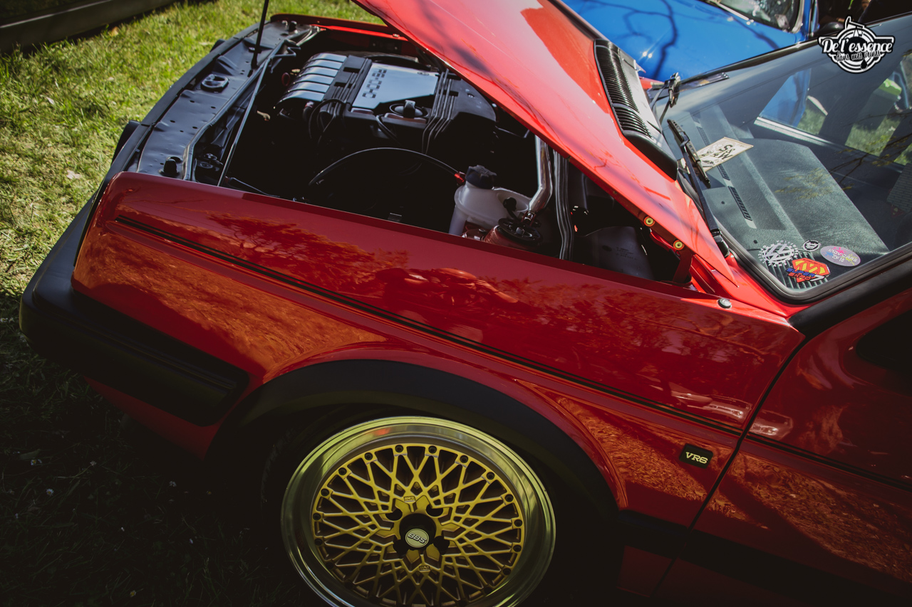 Ici, c’est soleil, bière et barbuc… avec accessoirement des VW, Béhème, Audi, Porsche, Seat, Mercos, Opel mais aussi une ribambelle de tricolores ou japonaises énervées. Quelques italienne et américaines et le tableau est au complet. Sachant que la présélection de l’équipe organisatrice permet d’assurer un level à toute épreuve. De la R8 posée et chaussée en BBS à la Porsche 964 « posey » en passant par la Golf 1 GTi passée en 1.8 20v turbo, la BMW 635 CSi slammed ou au Corrado VR6 turbalisé, l’apparence vous fracasse puis la chasse aux détails vous achèvent !