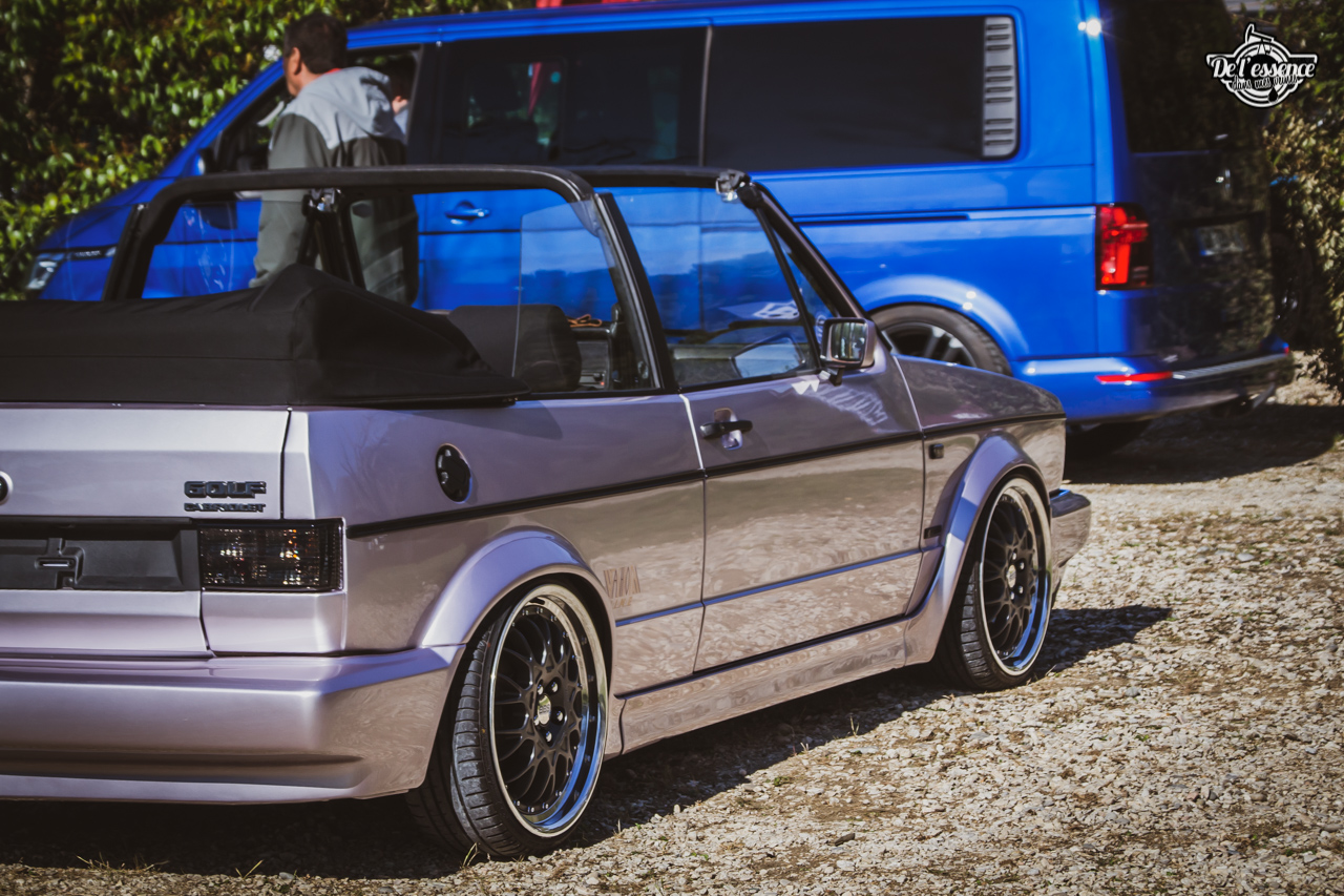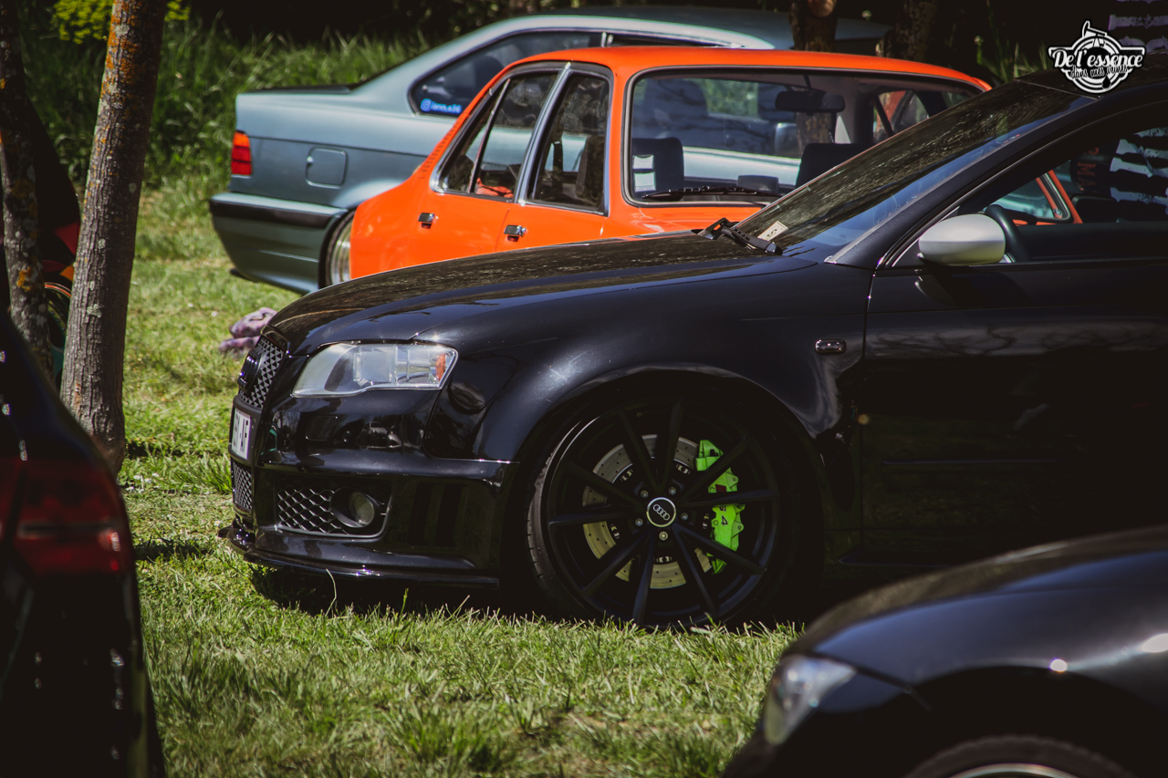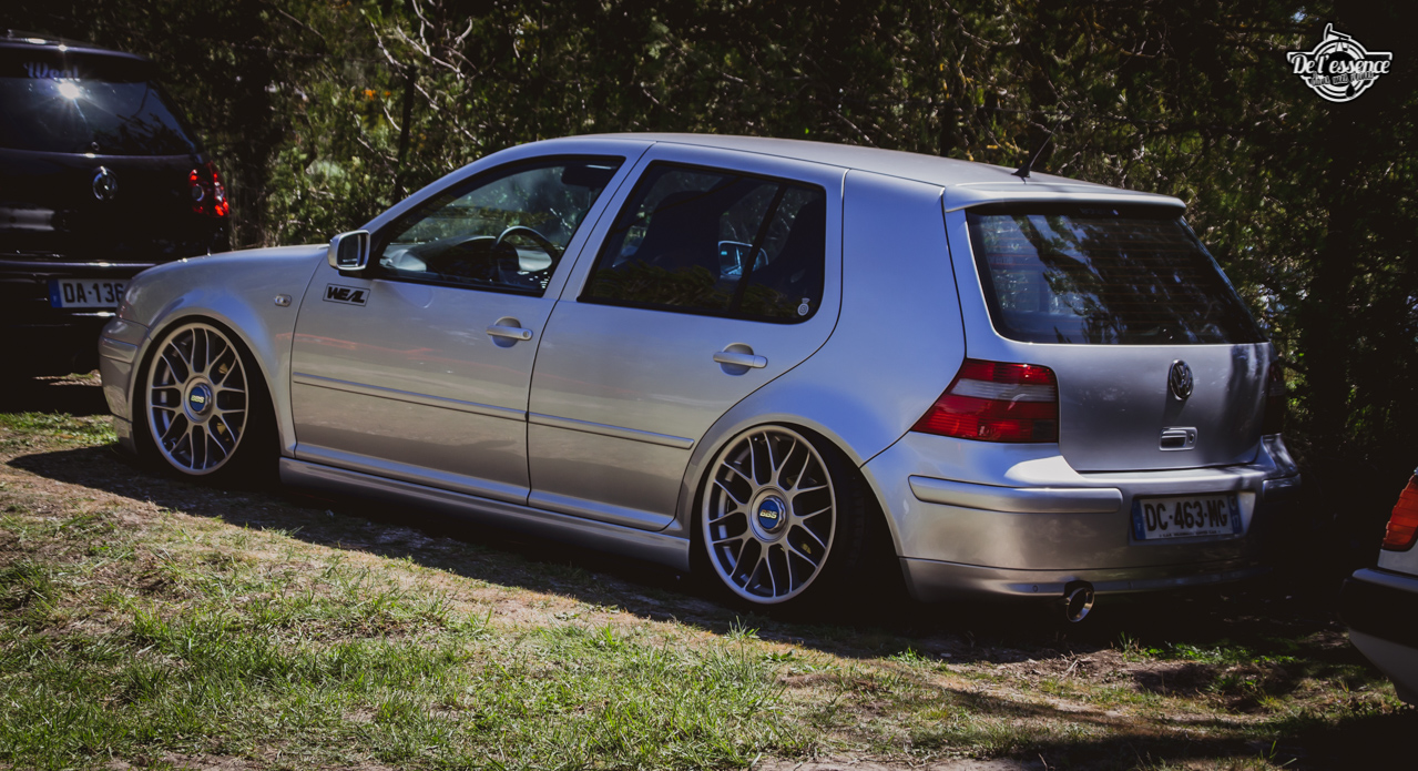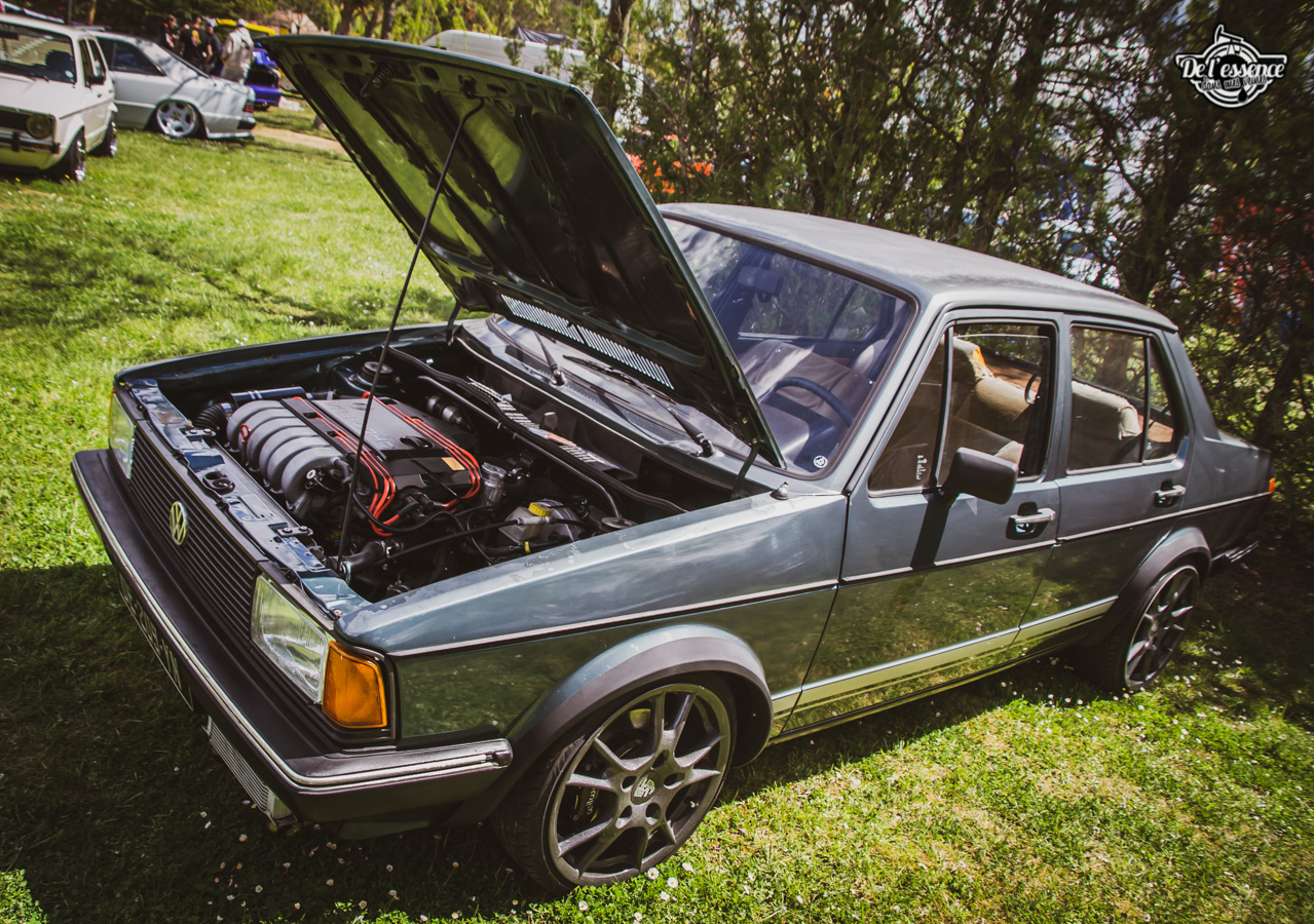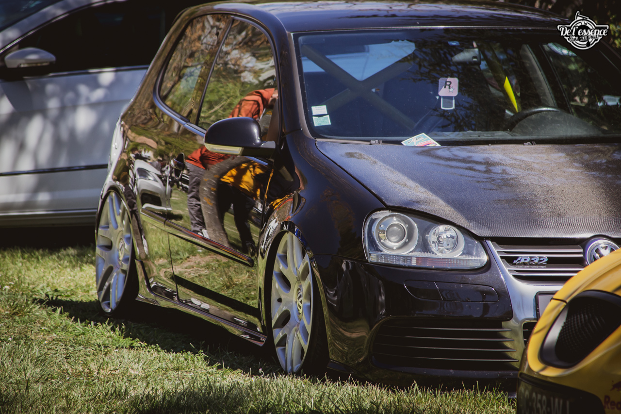 Ici, c’est soleil, bière et barbuc… avec accessoirement des VW, Béhème, Audi, Porsche, Seat, Mercos, Opel mais aussi une ribambelle de tricolores ou japonaises énervées. Quelques italienne et américaines et le tableau est au complet. Sachant que la présélection de l’équipe organisatrice permet d’assurer un level à toute épreuve. De la R8 posée et chaussée en BBS à la Porsche 964 « posey » en passant par la Golf 1 GTi passée en 1.8 20v turbo, la BMW 635 CSi slammed ou au Corrado VR6 turbalisé, l’apparence vous fracasse puis la chasse aux détails vous achèvent !