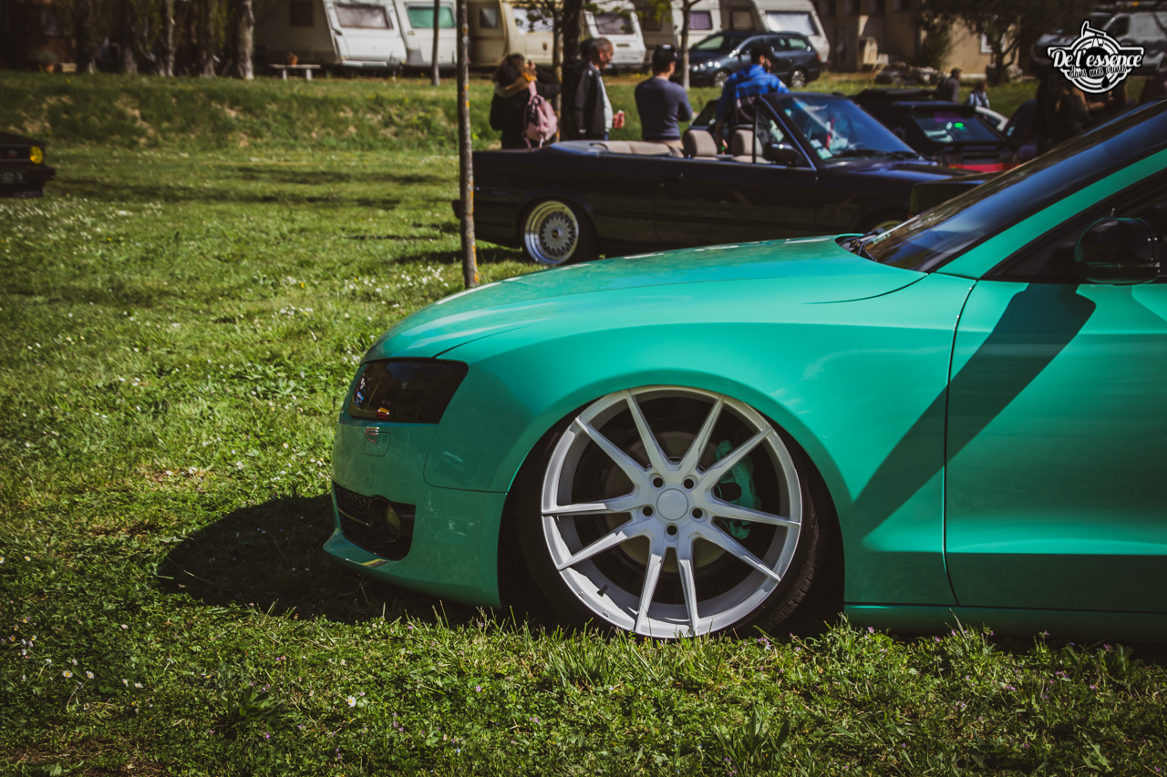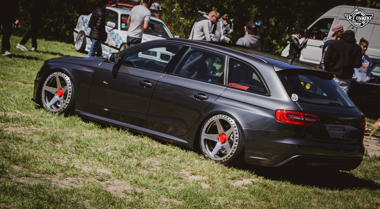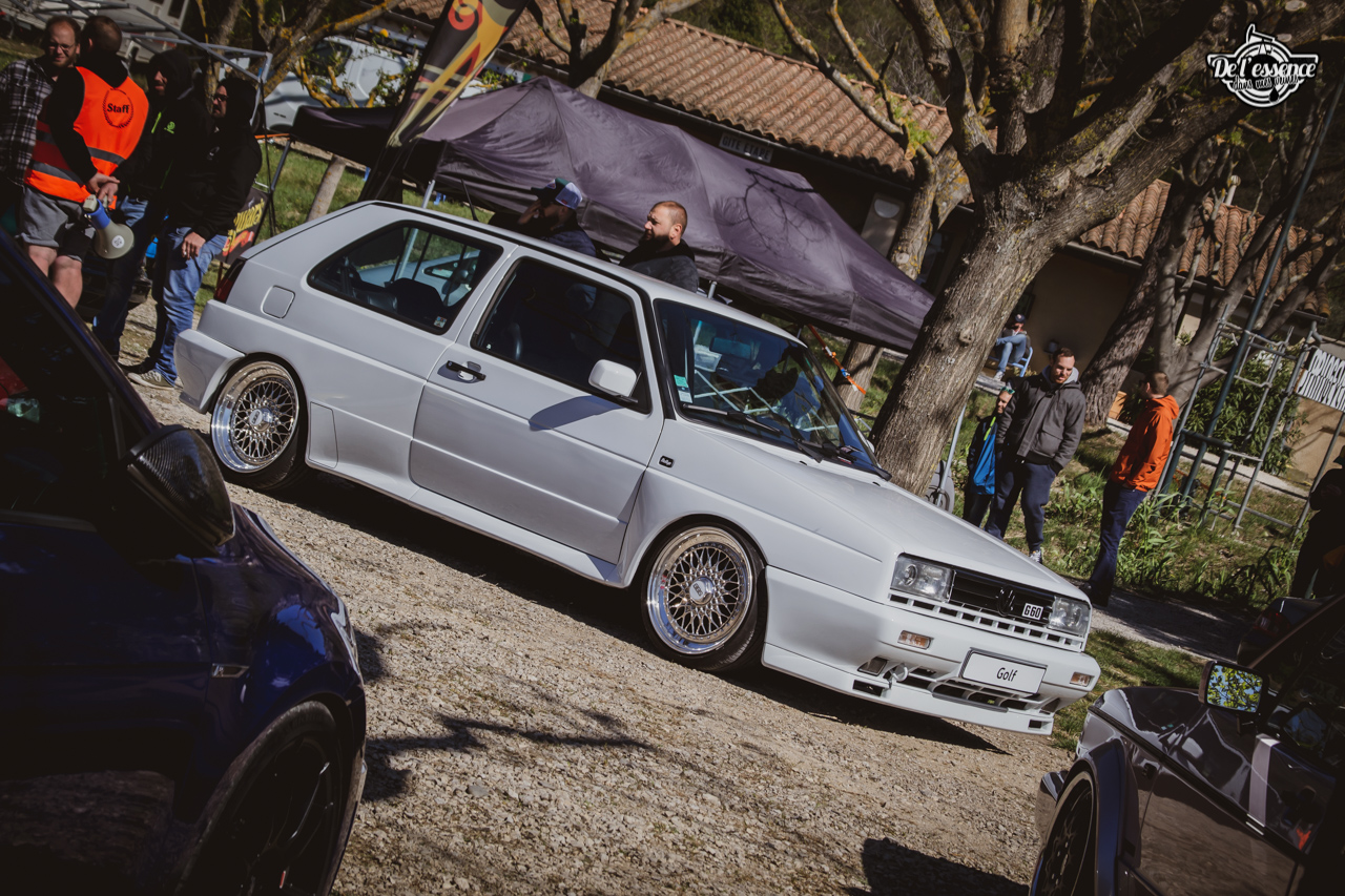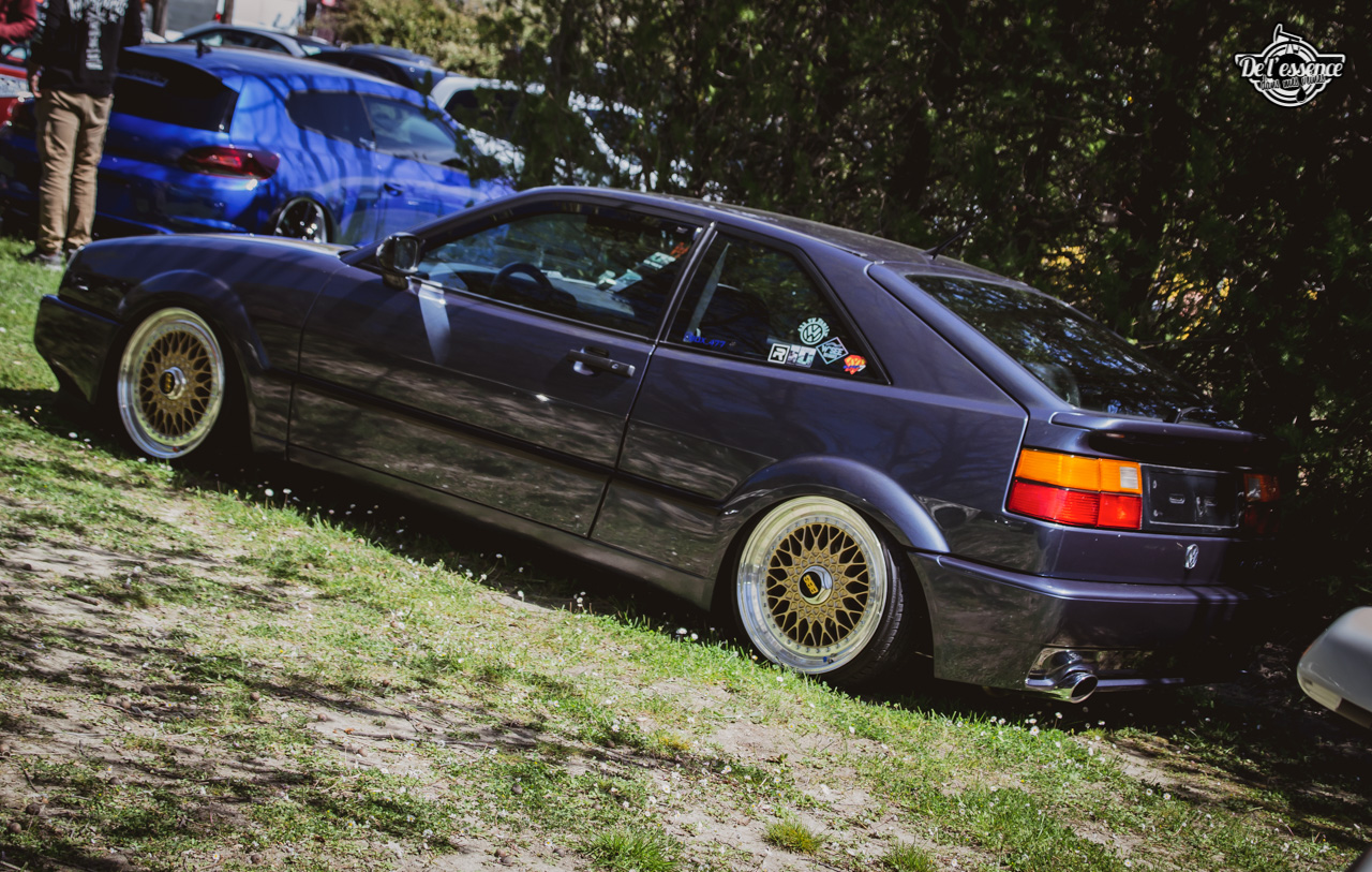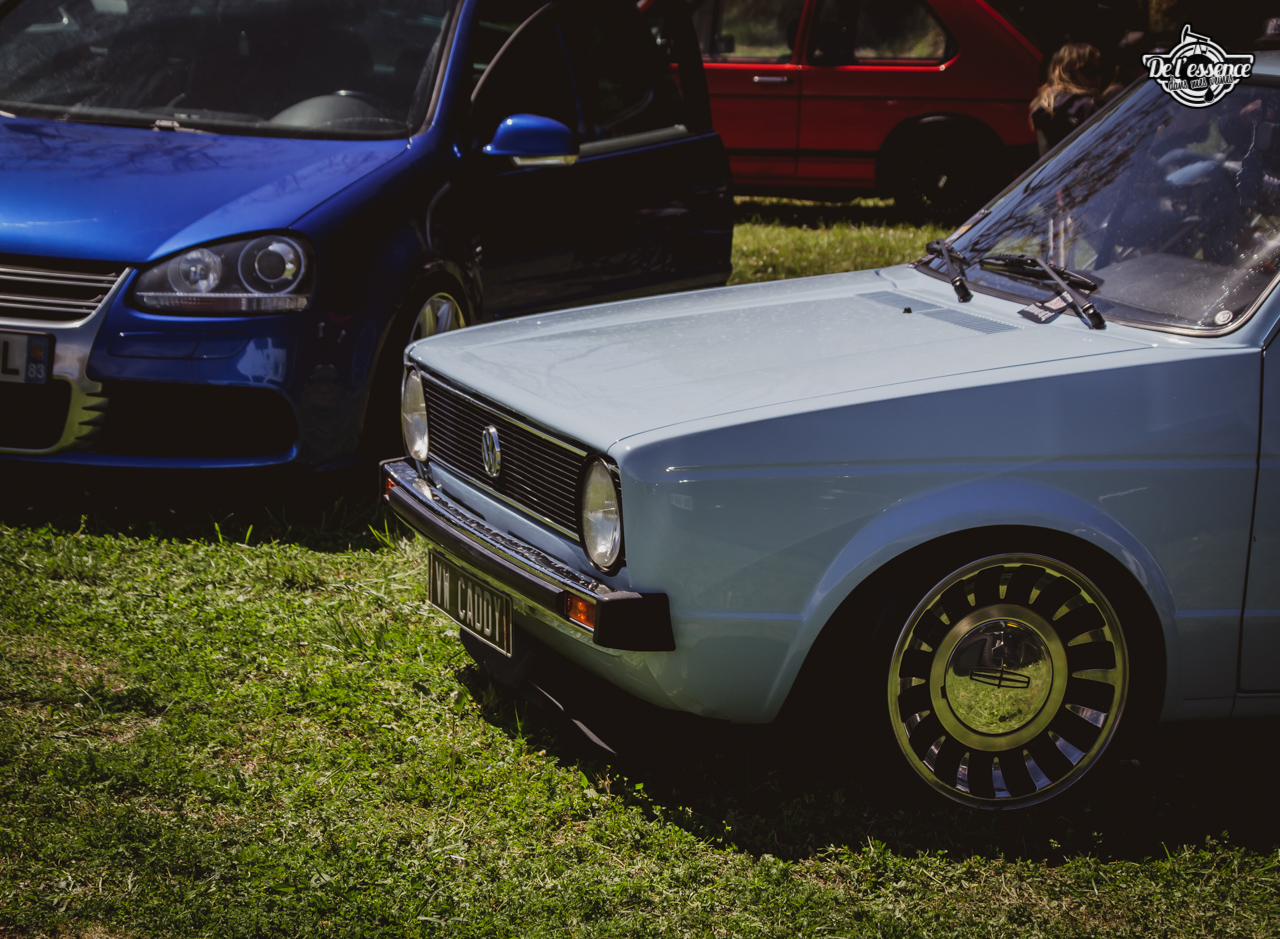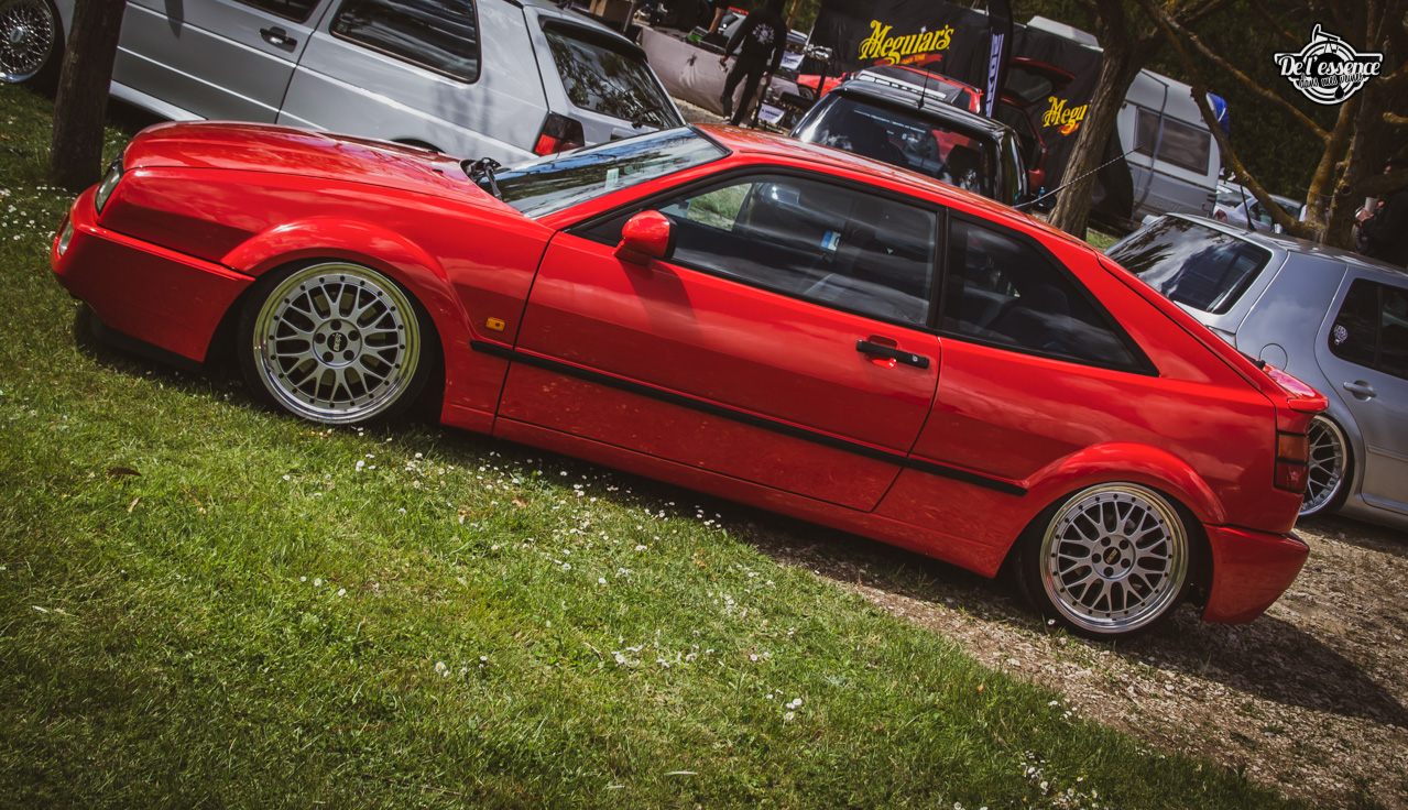 Ici, c’est soleil, bière et barbuc… avec accessoirement des VW, Béhème, Audi, Porsche, Seat, Mercos, Opel mais aussi une ribambelle de tricolores ou japonaises énervées. Quelques italienne et américaines et le tableau est au complet. Sachant que la présélection de l’équipe organisatrice permet d’assurer un level à toute épreuve. De la R8 posée et chaussée en BBS à la Porsche 964 « posey » en passant par la Golf 1 GTi passée en 1.8 20v turbo, la BMW 635 CSi slammed ou au Corrado VR6 turbalisé, l’apparence vous fracasse puis la chasse aux détails vous achèvent !
