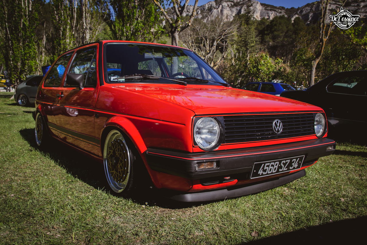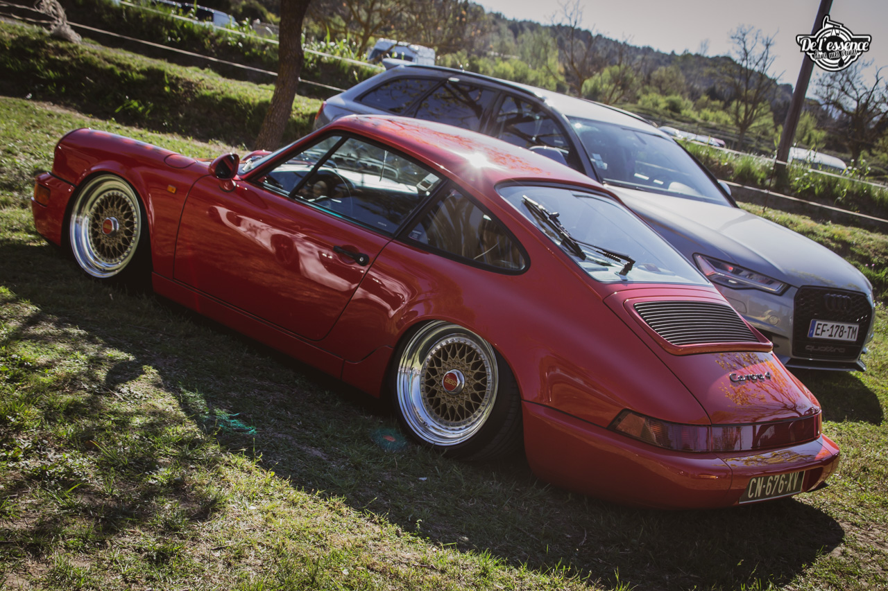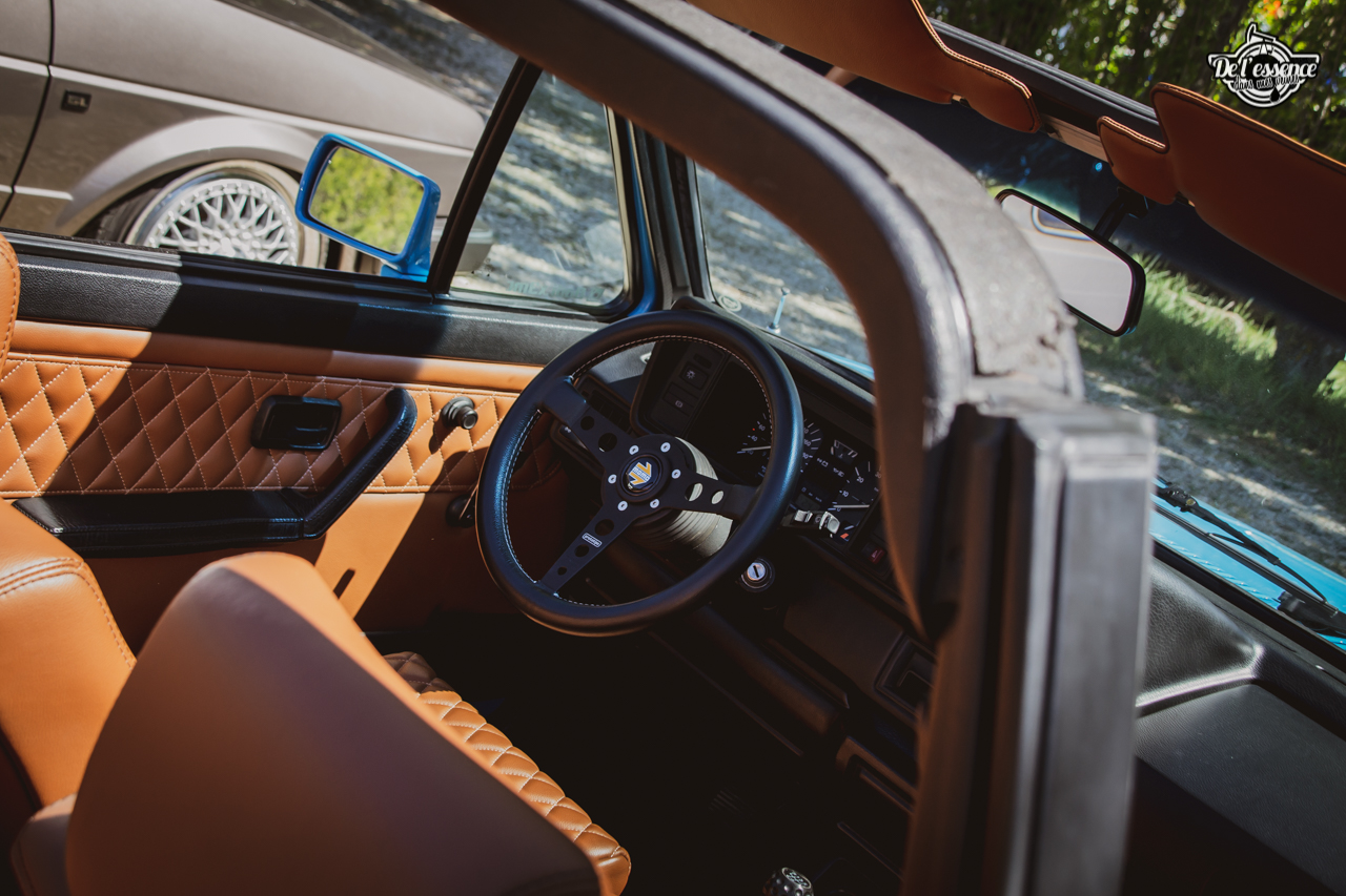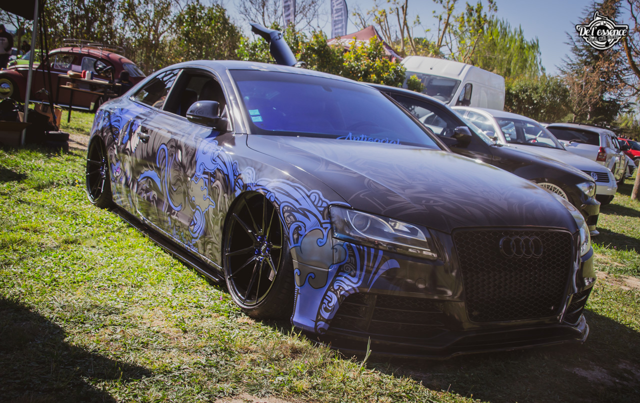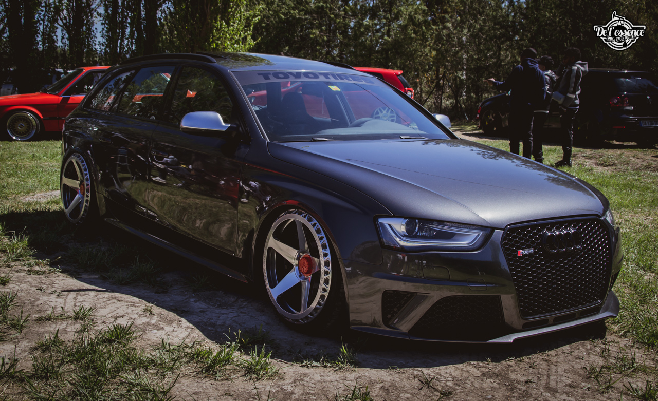 Ici, c’est soleil, bière et barbuc… avec accessoirement des VW, Béhème, Audi, Porsche, Seat, Mercos, Opel mais aussi une ribambelle de tricolores ou japonaises énervées. Quelques italienne et américaines et le tableau est au complet. Sachant que la présélection de l’équipe organisatrice permet d’assurer un level à toute épreuve. De la R8 posée et chaussée en BBS à la Porsche 964 « posey » en passant par la Golf 1 GTi passée en 1.8 20v turbo, la BMW 635 CSi slammed ou au Corrado VR6 turbalisé, l’apparence vous fracasse puis la chasse aux détails vous achèvent !