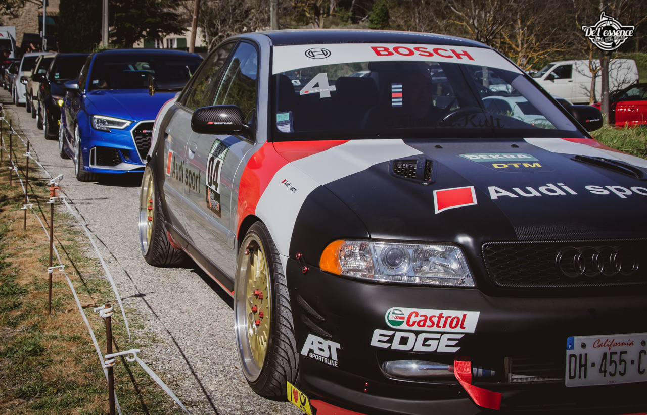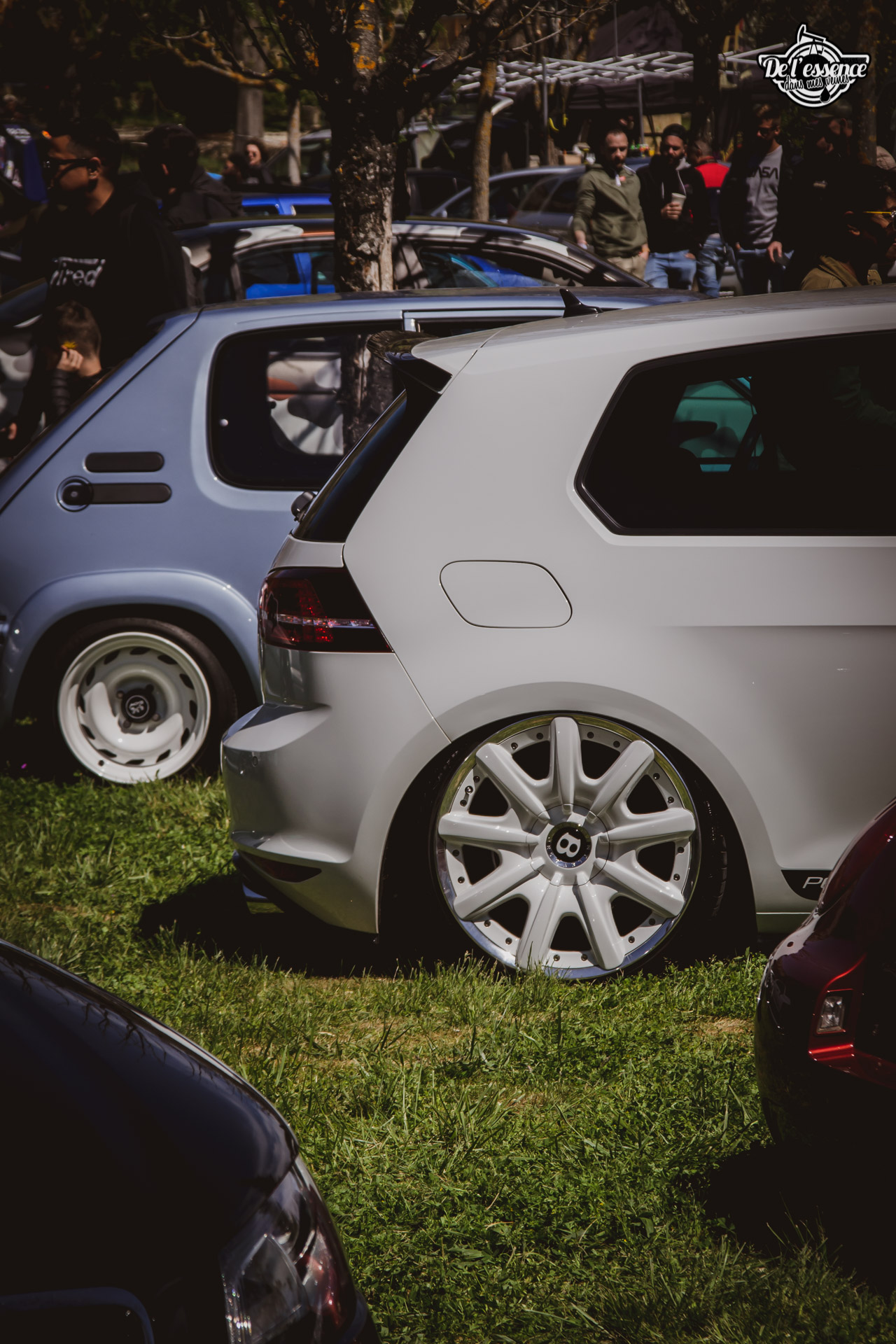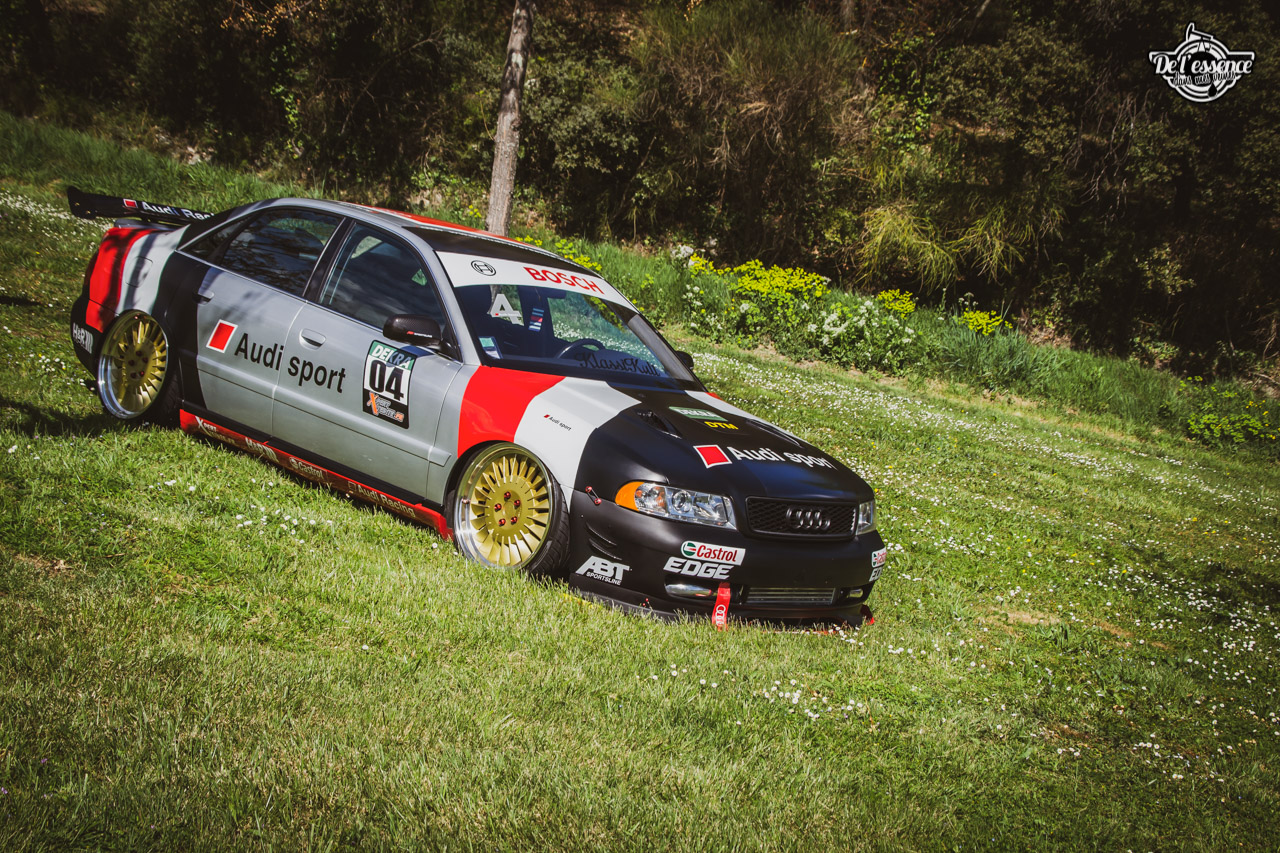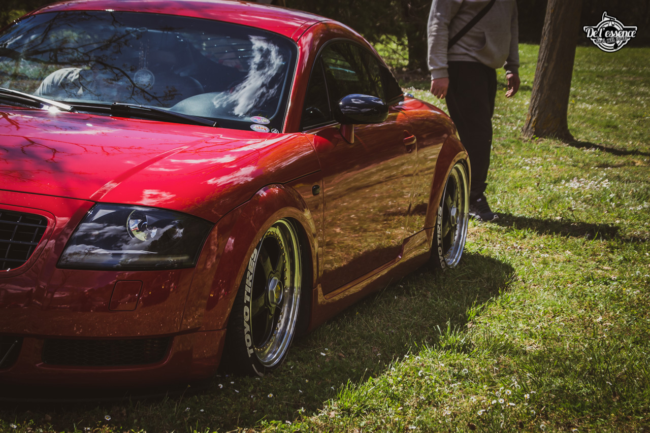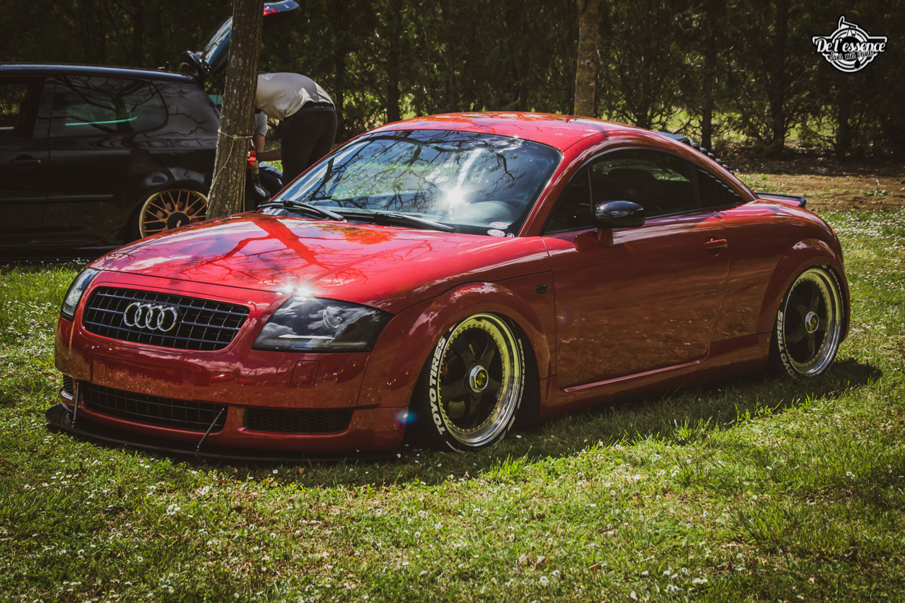 Ici, c’est soleil, bière et barbuc… avec accessoirement des VW, Béhème, Audi, Porsche, Seat, Mercos, Opel mais aussi une ribambelle de tricolores ou japonaises énervées. Quelques italienne et américaines et le tableau est au complet. Sachant que la présélection de l’équipe organisatrice permet d’assurer un level à toute épreuve. De la R8 posée et chaussée en BBS à la Porsche 964 « posey » en passant par la Golf 1 GTi passée en 1.8 20v turbo, la BMW 635 CSi slammed ou au Corrado VR6 turbalisé, l’apparence vous fracasse puis la chasse aux détails vous achèvent !