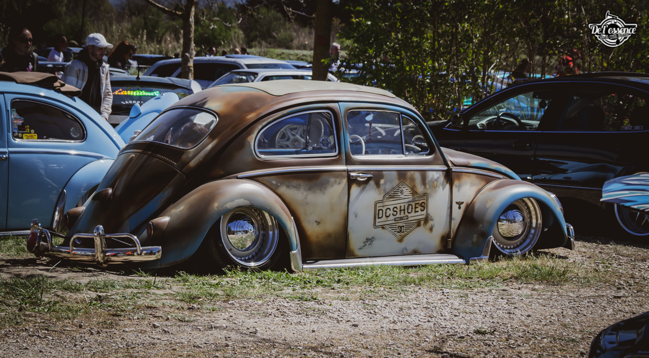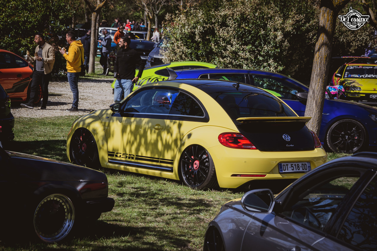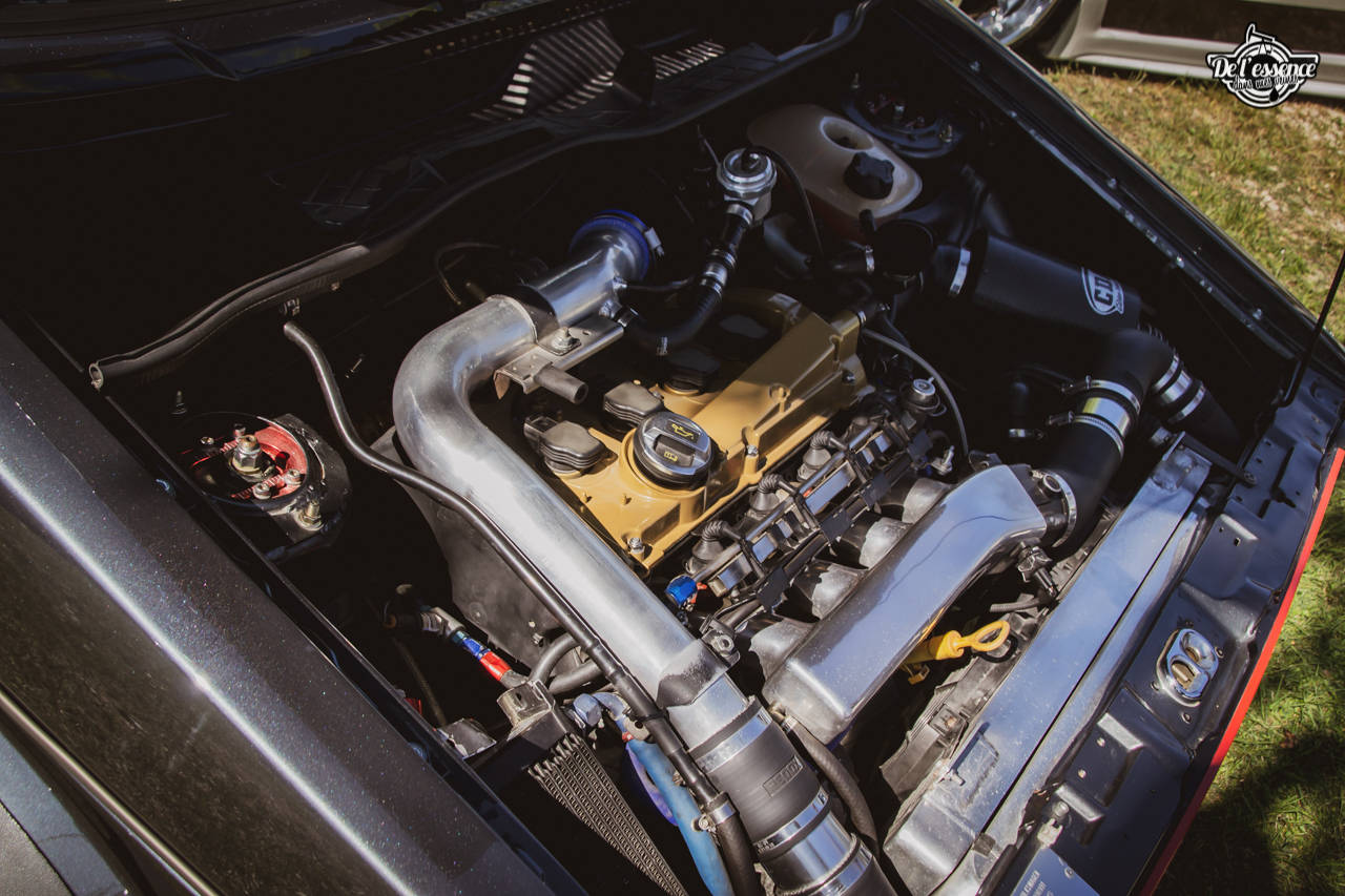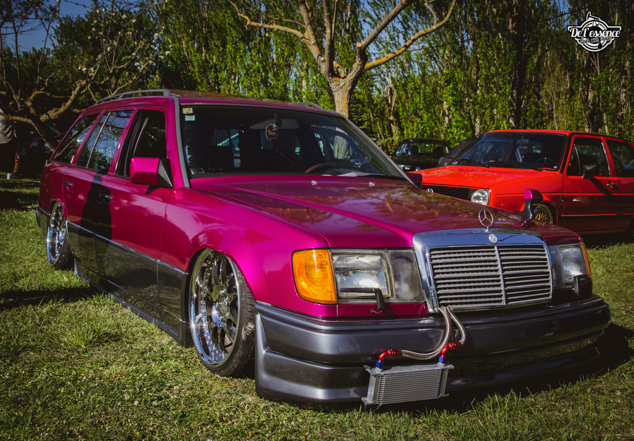 Le Spring Event, c’est du porno mécanique, de la destruction de rétine… à partir du moment où tu kiffes les caisses dropées, swappées, turbalisées et accessoirement, aussi propres et cleans qu’une resto californienne. Oui, elles ne sont p’têt pas d’origine, mais au moins elles sont rutilantes et étincelantes. Les puristes aiment la rouille… les « Springers » préfèrent quand ça brille. On a beau dire, mais t’as plus de caisse restaurées et sauvées sur ce genre d’event que sur le car and coffee dominical des tontons puristes !