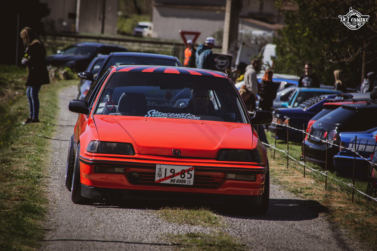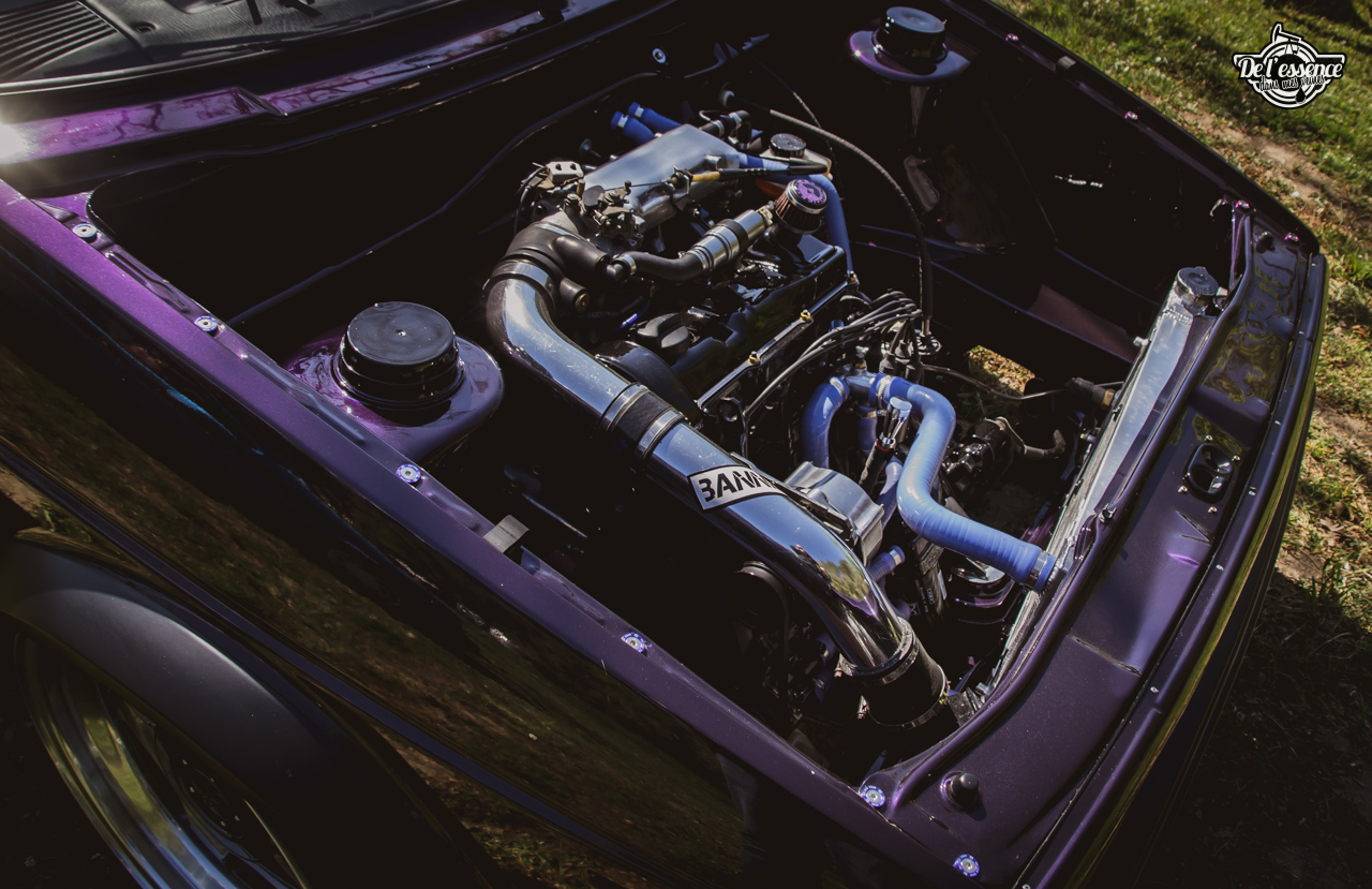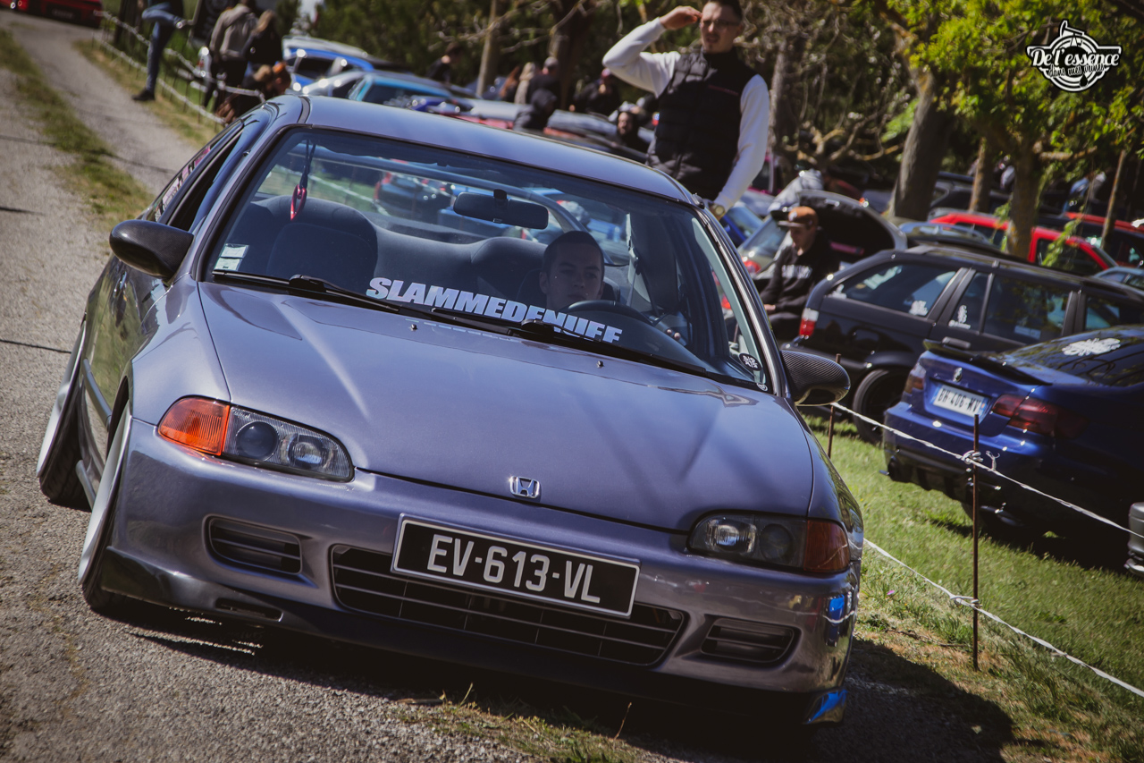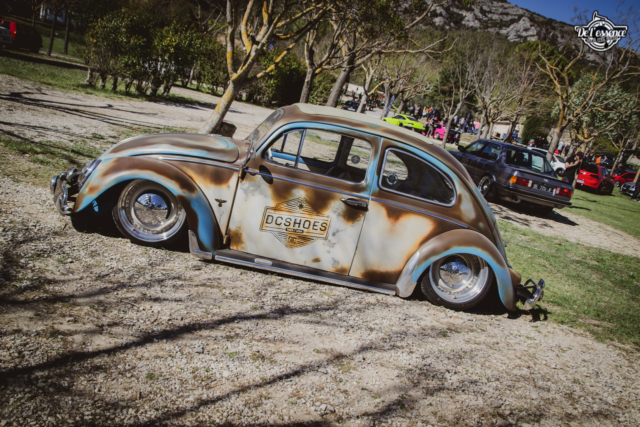 Le Spring Event, c’est du porno mécanique, de la destruction de rétine… à partir du moment où tu kiffes les caisses dropées, swappées, turbalisées et accessoirement, aussi propres et cleans qu’une resto californienne. Oui, elles ne sont p’têt pas d’origine, mais au moins elles sont rutilantes et étincelantes. Les puristes aiment la rouille… les « Springers » préfèrent quand ça brille. On a beau dire, mais t’as plus de caisse restaurées et sauvées sur ce genre d’event que sur le car and coffee dominical des tontons puristes !