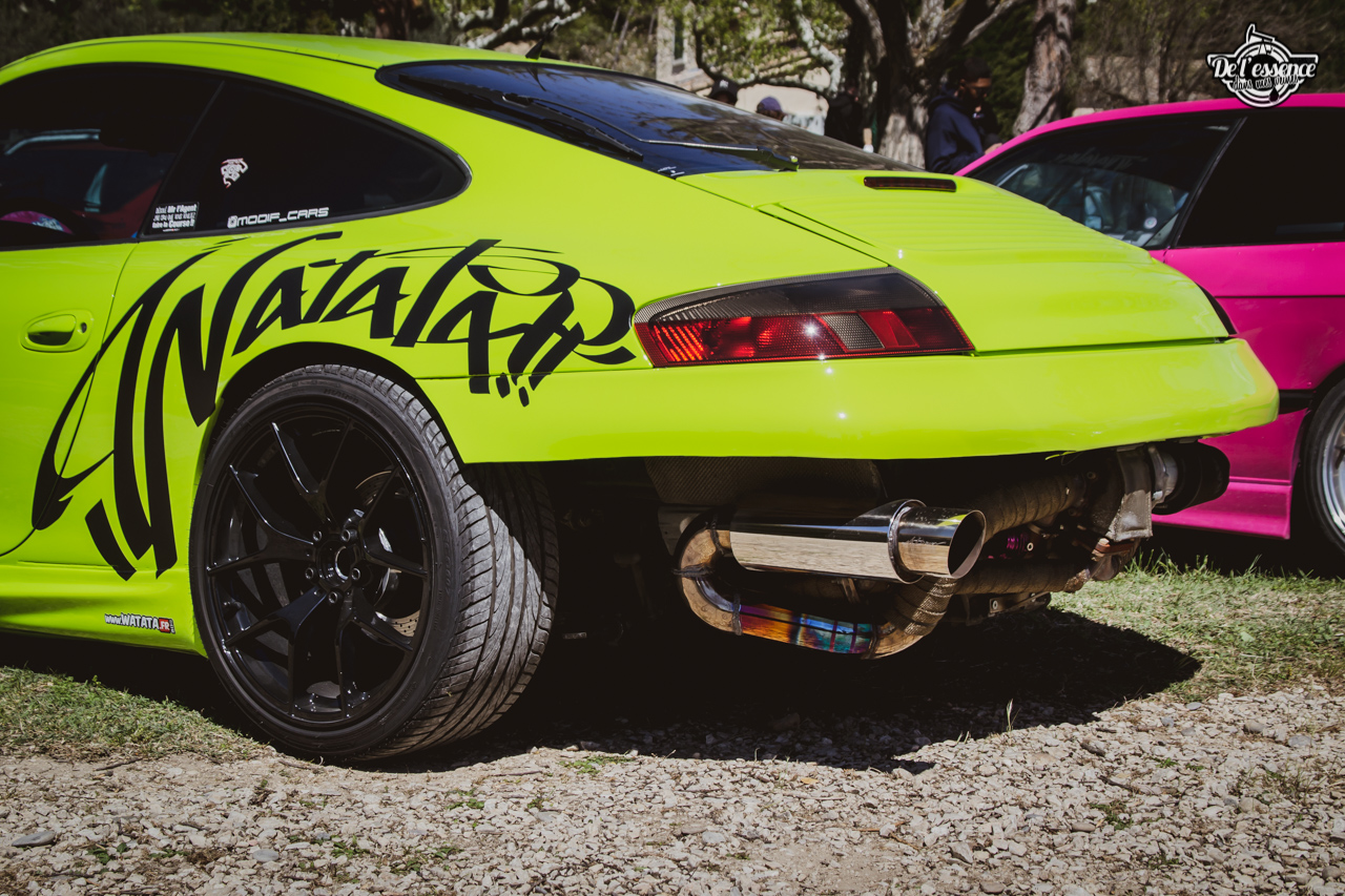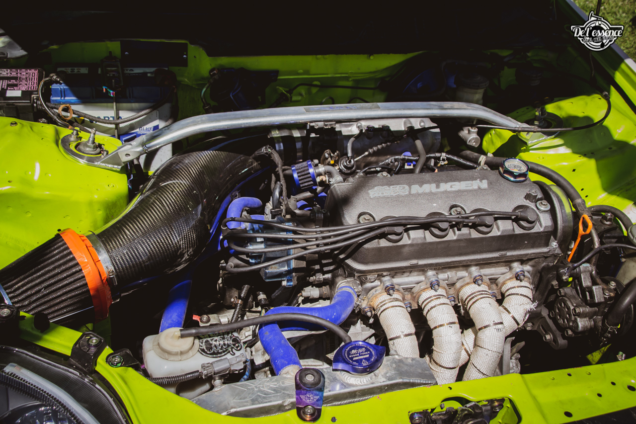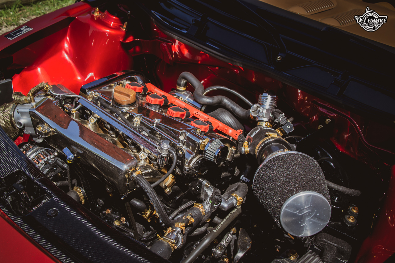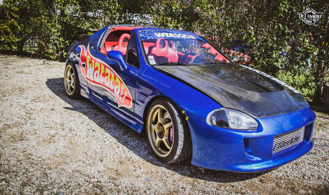 Le Spring Event, c’est du porno mécanique, de la destruction de rétine… à partir du moment où tu kiffes les caisses dropées, swappées, turbalisées et accessoirement, aussi propres et cleans qu’une resto californienne. Oui, elles ne sont p’têt pas d’origine, mais au moins elles sont rutilantes et étincelantes. Les puristes aiment la rouille… les « Springers » préfèrent quand ça brille. On a beau dire, mais t’as plus de caisse restaurées et sauvées sur ce genre d’event que sur le car and coffee dominical des tontons puristes !
