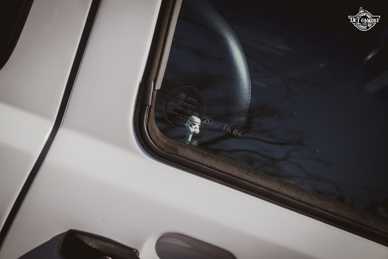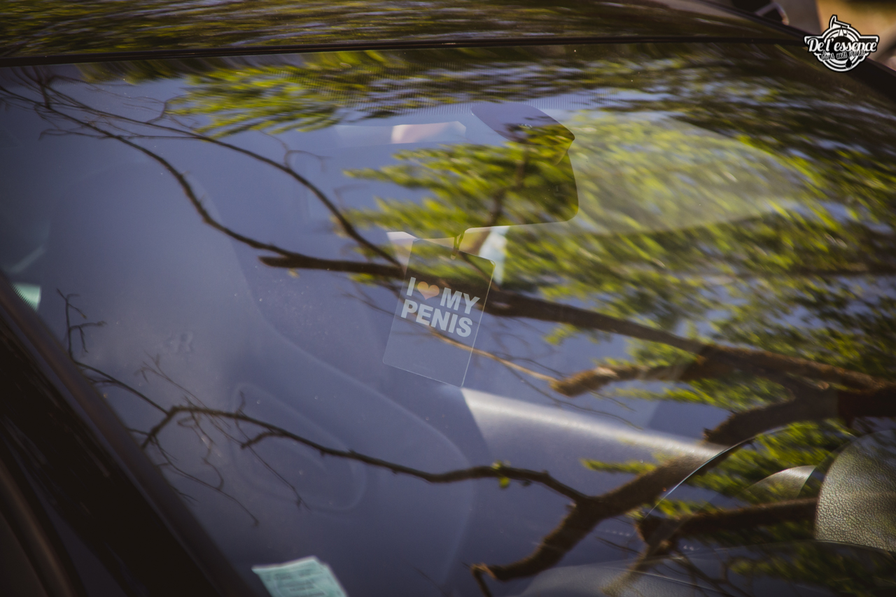 Les loquets de portes passés en mode Stormtrooper, les valves de jantes personnalisées, les stickers sur mesure, les sonos camouflées, les finitions délirantes, les peintures éblouissantes, les covering délirants, les shaved bay cliniques… chaque caisse exposée reflète l’adn de celui qui y a passé des heures pour faire différent. Et il faut être difficile ou très chiant pour y trouver des fautes de gouts…