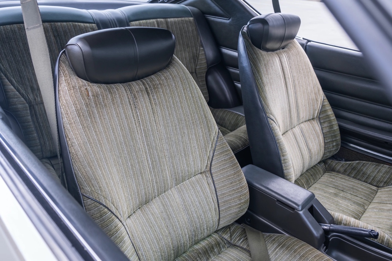 La Silvia est maintenue par des amortisseurs Koni réglables. Les ressorts à lames sont neufs, tout comme les étriers qui mordent maintenant des disques rainurés à l’avant. DU côté du 4 pattes, le 1.8 l a vu débarquer un arbres à cames retaillé, un duo de carbu Weber double corps et il expire à travers un collecteur 4-2-1 qui débouche sur une ligne inox et se termine sur un silencieux JDM. Aux quatre coins, les spécialistes auront déjà reconnu les véritables RS Watanabe gris satiné de 14″ chaussées en Kumho de 175/60.