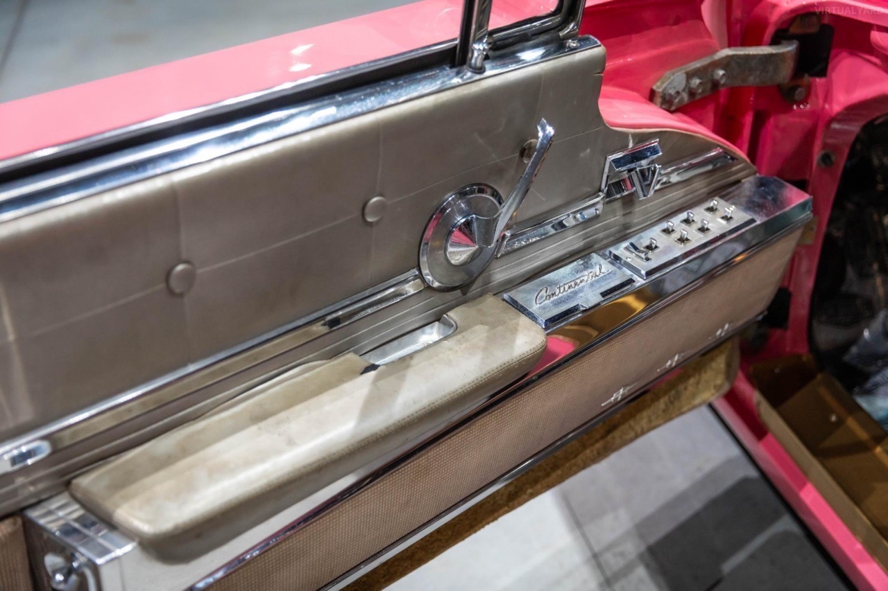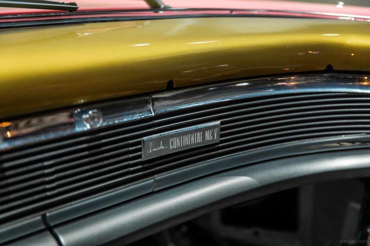 C’est c’qui est arrivé à ce coupé Continental de 1960, l’un des 1461 Mark V produits cette année là. Après une première vie passée sous le soleil californien, elle a été exportée au pays des kangourous. C’est là bas qu’elle est devenue Hot Pink, robe rose, toit gris satiné et des touches plaquées or sur la calandre, le contour de toit, le panneau arrière ou les trois barrettes latérales… de quoi rendre jaloux Mister T !