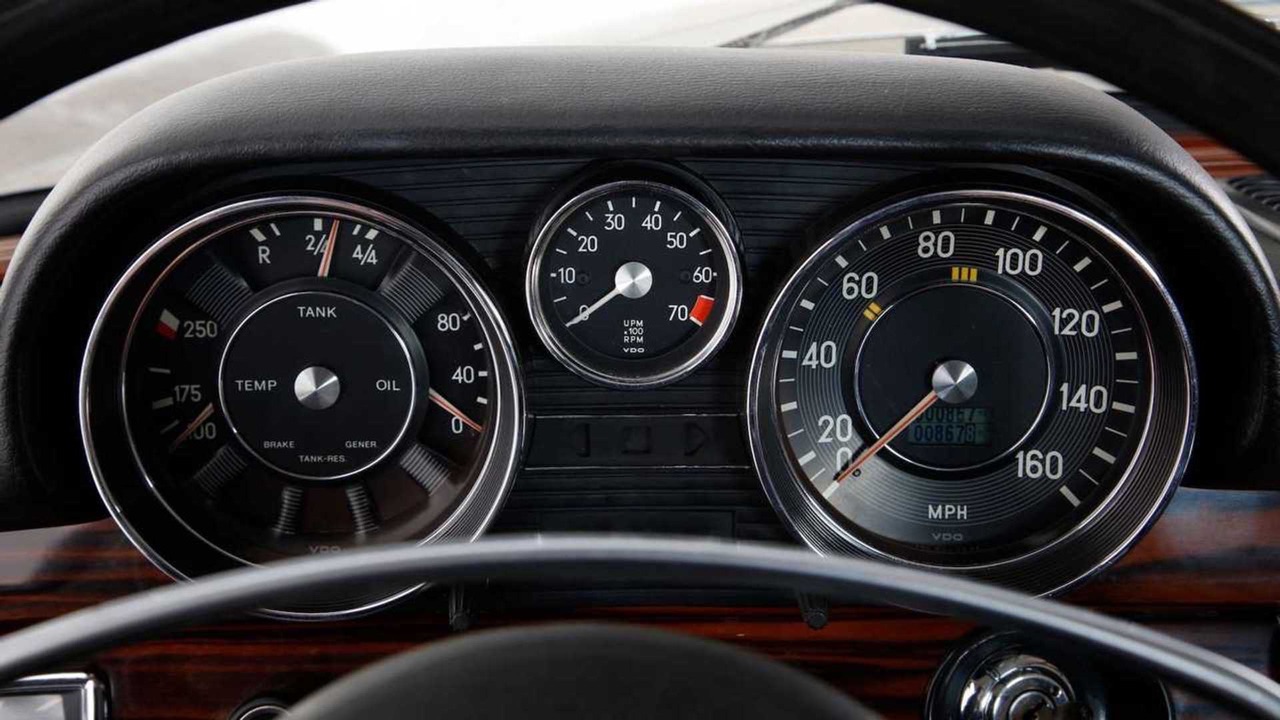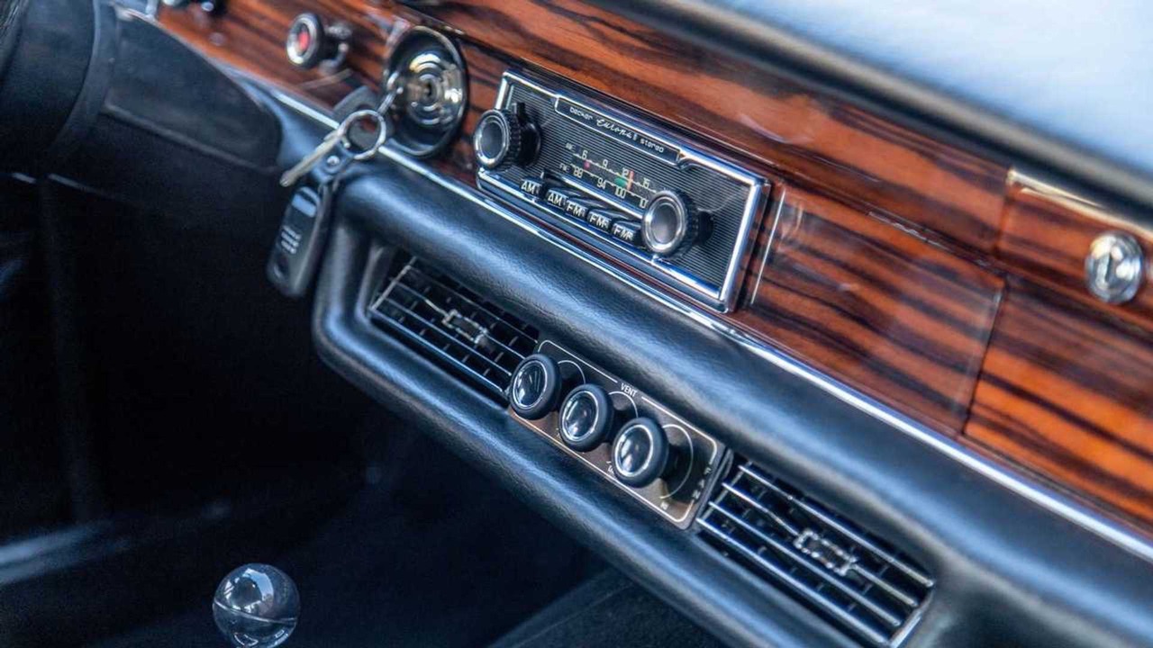 Dehors, la caisse s’est contentée d’un éclairage LED. Pour le reste, elle a été rénovée des joints aux chromes tout en prenant soin de conserver la patine laissée par le temps. Dedans, c’est la même, si ce n’est que l’aspect d’époque s’appuie sur une restauration complète. Tout est neuf, de la sellerie en cuir noir jusqu’aux boiseries, en passant par la moquette, le ciel de toit, le tableau de bord, les manos, les panneaux de portes, le faisceau et discrètement, elle voit débarquer une clim auto CVC et une sono digne d’un concert des Stones !