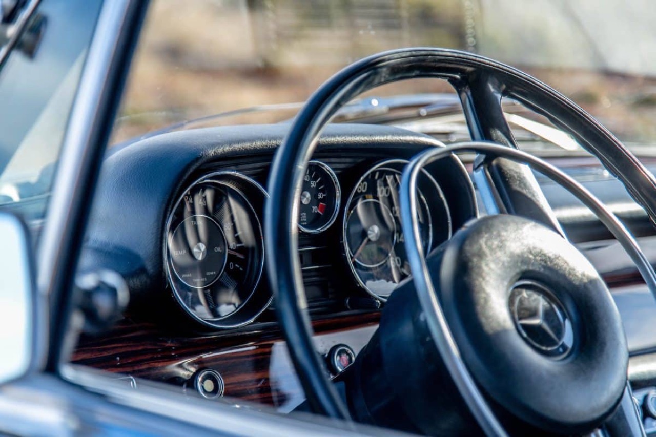 La Mercedes 300 SEL V8, c’est la classe à Palavas ! Ouais, en 71, elle faisait pas rire… mais 50 ans plus tard, les gens ne se retournent plus sur son passage. Si 99% verront à travers elle un taxi parisien ressorti des 70’s, seul un oeil averti saura reconnaitre cette ancienne reine de la file de gauche, capable d’enchainer un Paris – St Tropez sur un tapis roulant fait de cuir pleine fleur et paré de ronce de noyer !