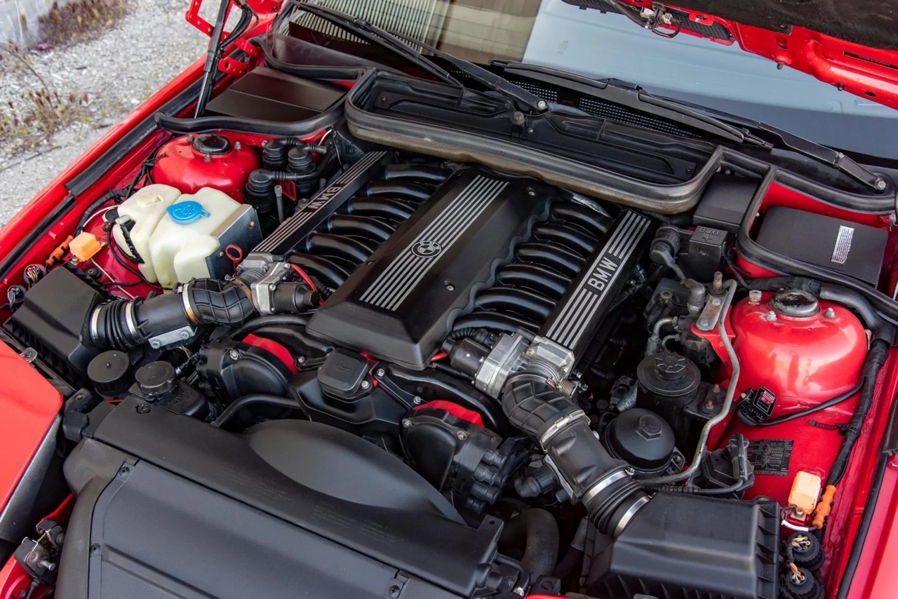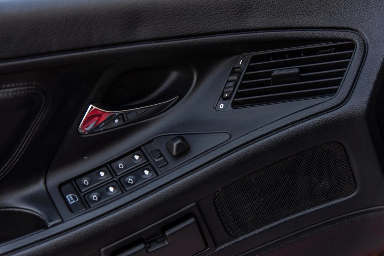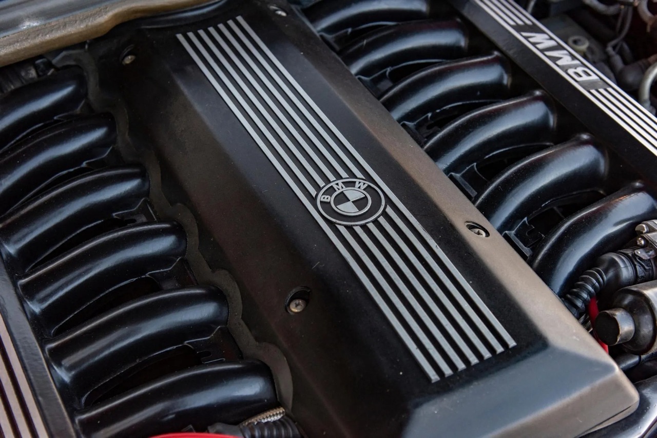 Sous le capot, le V12 M70 de 5.0 l s’est retrouvé avec une gestion Wokke V2, des injecteurs Bosch plus gros, des filtres K&N dans les boites à air d’origine et une ligne full inox débarrassée des catas avant de déboucher sur deux silencieux à double sortie Borla qui se chargent de libérer le gazier et lui faire gagner 50 ch. De quoi envoyer 350 ch pour 510 Nm aux roues arrière via une boite 6 manuelle associée à un DGL. Ok, là encore, vue d’aujourd’hui, ça fait sourire… 350 ch, c’est la puissance d’un SUV familiale. Mais sur une bestiole venue tout droit de 1991, ça fait son effet.