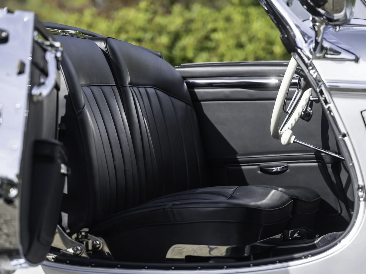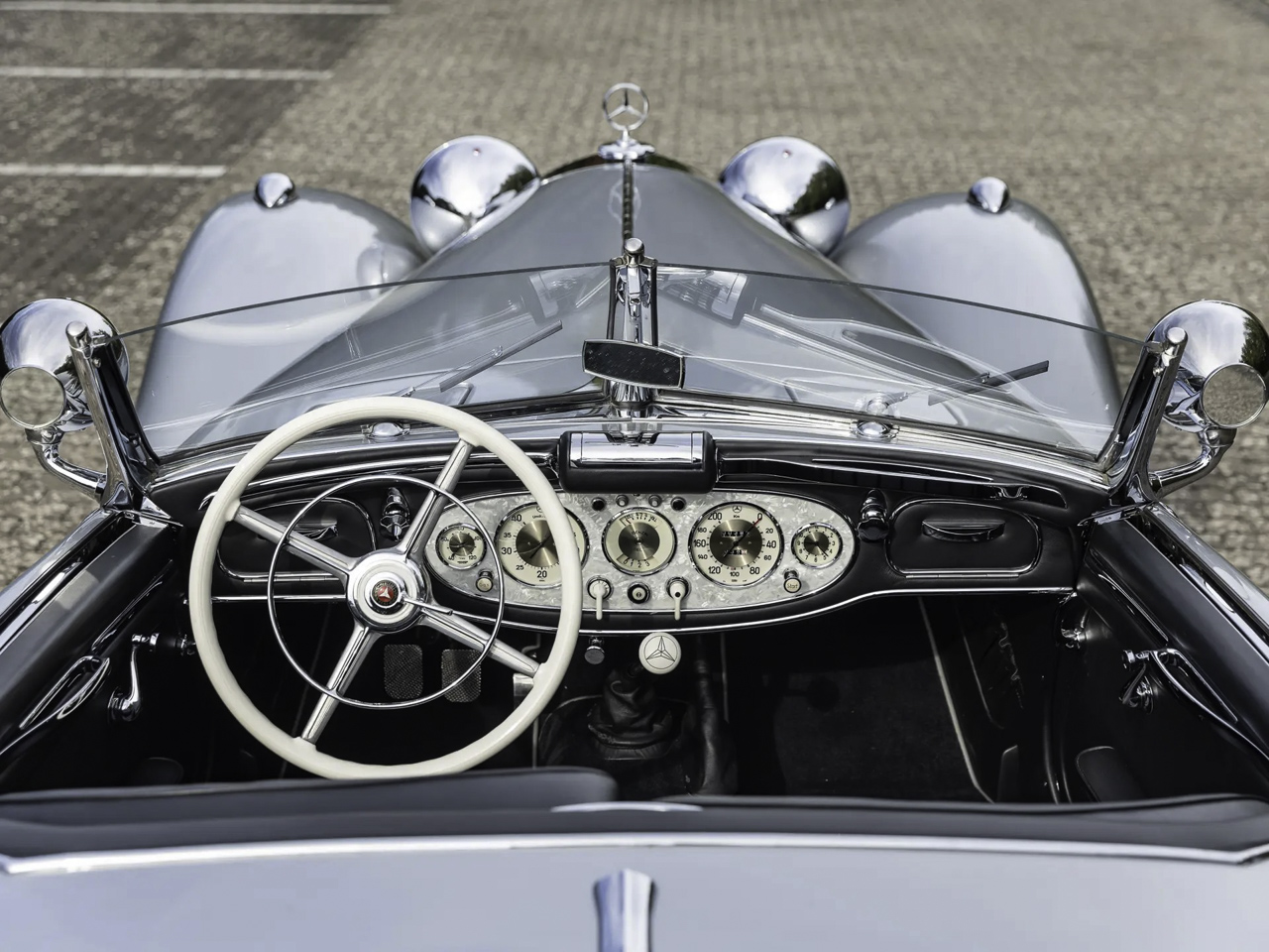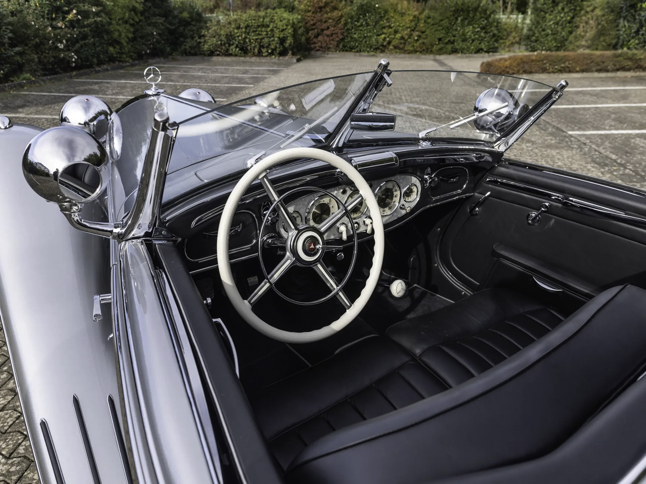 Parmi toutes ces différentes variantes de Mercedes 500K et de 540K, celle qui garde la ferveur des collectionneurs, c’est la Special Roadster. Empattement court, cette deux places est considérée comme le pâté de tête des Mercedes d’avant-guerre puisque seulement 25 roadster ont vu le jour. D’ailleurs l’un d’entre elles avait été l’oeuvre d’une commande spéciale passée en 1941 par le Reichsmarschall Hermann Goering (ministre d’Hitler, président du Reichstag et créateur de la Gestapo… le bon chtarbé de base !). Habillée en bleu ciel, sa couleur préférée, il s’agit d’un Special Roadster exceptionnellement blindé et surnommé « Blue Goose ». Le 4 mai 45, l’armée américaine qui est entrée à Berchtesgaden, trouve la Blue Goose. Le major-général Maxwell Taylor récupère la voiture pour en faire son véhicule de commandement jusqu’à ce que le Trésor américain demande à faire rapatrier la 540K à Washington. Une fois de l’autre côté de l’Atlantique, elle va traverser le pays pour y être fièrement montrée en guise de trophée de guerre. En 1956, elle est venue aux enchères par l’armée américaine et va faire le bonheur d’un certain Jacques Tunick qui s’est délesté de 2167 $ (grosso modo 18000 € de nos jours). Deux ans plus tard, il va la revendre à un vétérinaire qui va la faire repeindre en noir. Elle va rester dans sa famille jusqu’au début des 2000’s avant qu’elle ne soit rachetée par Carnlough International Limited de Guernesey avec pour seule condition, qu’elle soit restaurée pour retrouver l’apparence qu’elle avait en 1941.