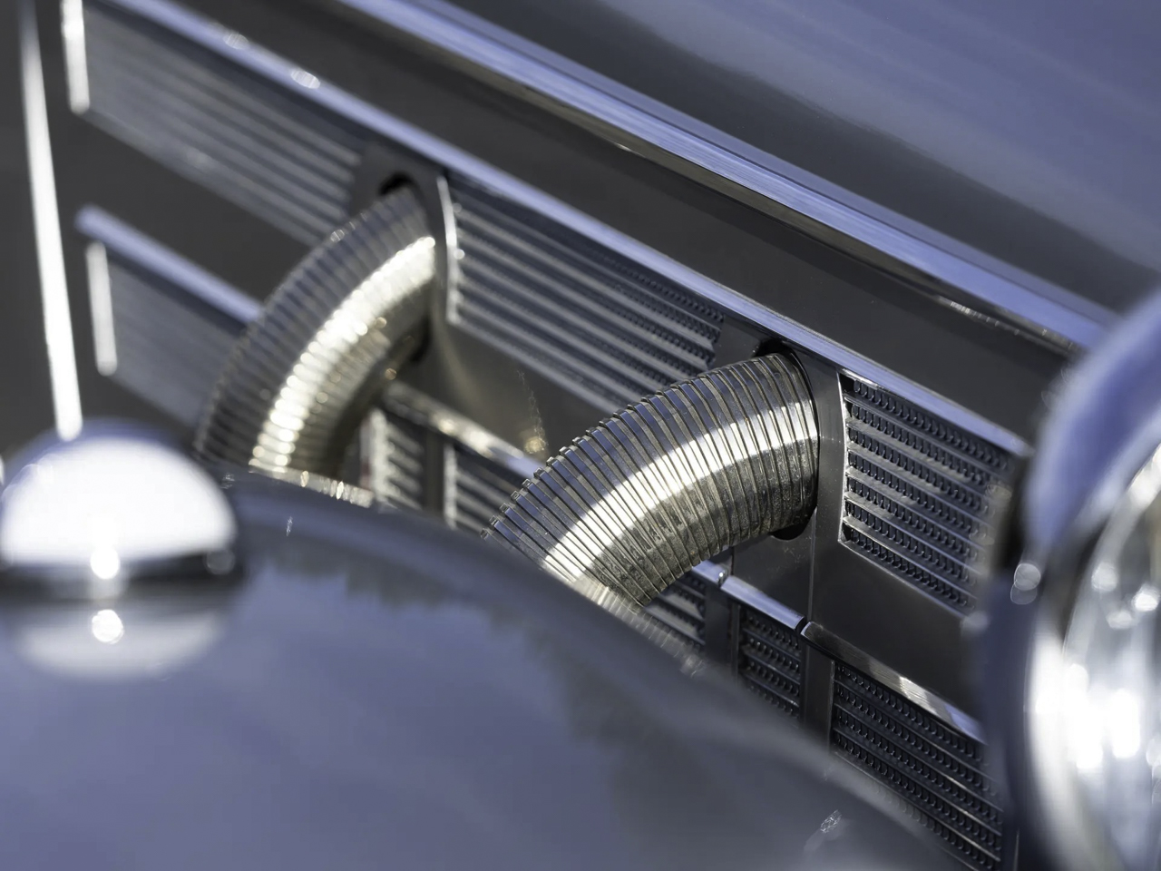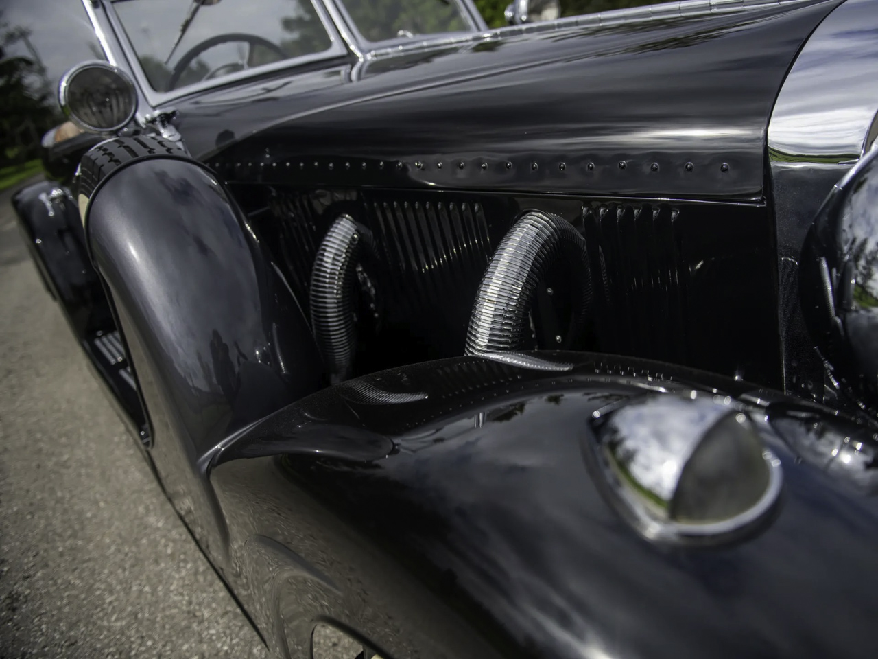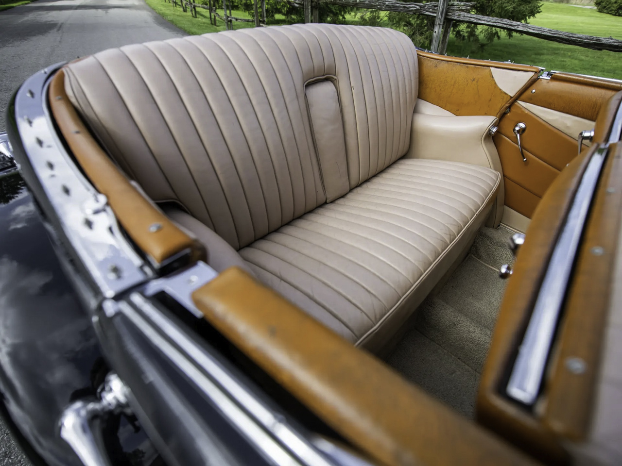 Parmi toutes ces différentes variantes de Mercedes 500K et de 540K, celle qui garde la ferveur des collectionneurs, c’est la Special Roadster. Empattement court, cette deux places est considérée comme le pâté de tête des Mercedes d’avant-guerre puisque seulement 25 roadster ont vu le jour. D’ailleurs l’un d’entre elles avait été l’oeuvre d’une commande spéciale passée en 1941 par le Reichsmarschall Hermann Goering (ministre d’Hitler, président du Reichstag et créateur de la Gestapo… le bon chtarbé de base !). Habillée en bleu ciel, sa couleur préférée, il s’agit d’un Special Roadster exceptionnellement blindé et surnommé « Blue Goose ». Le 4 mai 45, l’armée américaine qui est entrée à Berchtesgaden, trouve la Blue Goose. Le major-général Maxwell Taylor récupère la voiture pour en faire son véhicule de commandement jusqu’à ce que le Trésor américain demande à faire rapatrier la 540K à Washington. Une fois de l’autre côté de l’Atlantique, elle va traverser le pays pour y être fièrement montrée en guise de trophée de guerre. En 1956, elle est venue aux enchères par l’armée américaine et va faire le bonheur d’un certain Jacques Tunick qui s’est délesté de 2167 $ (grosso modo 18000 € de nos jours). Deux ans plus tard, il va la revendre à un vétérinaire qui va la faire repeindre en noir. Elle va rester dans sa famille jusqu’au début des 2000’s avant qu’elle ne soit rachetée par Carnlough International Limited de Guernesey avec pour seule condition, qu’elle soit restaurée pour retrouver l’apparence qu’elle avait en 1941.