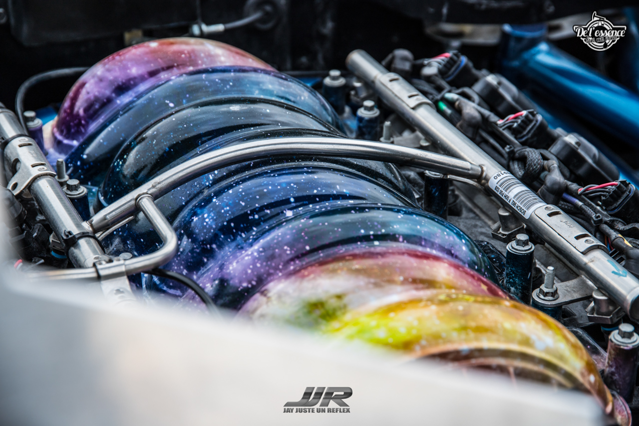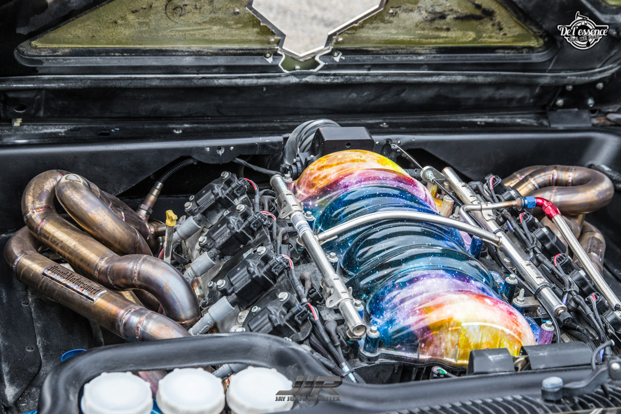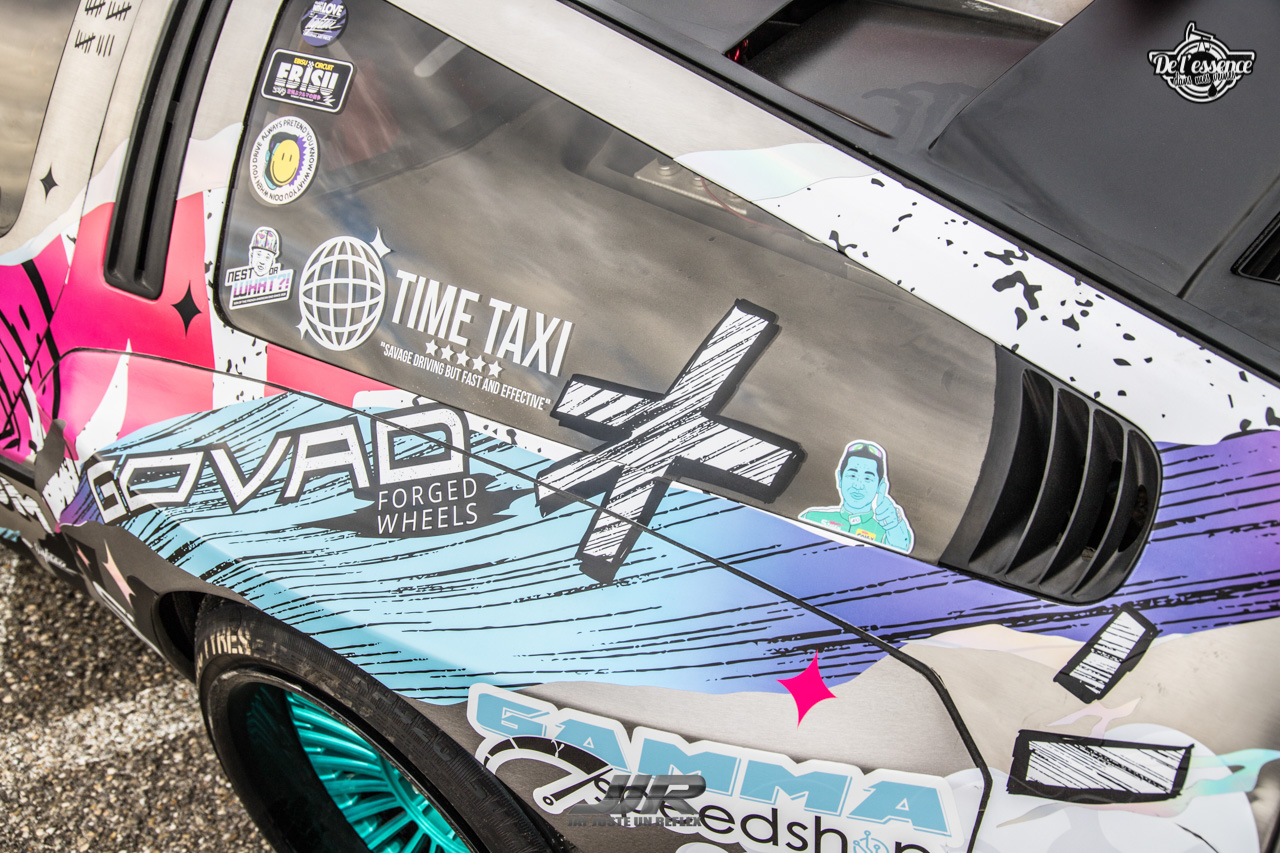 Bon Dieu ! C’est peut-être l’une des caisses les plus folles qu’on ait vu passer ici. Alex n’a pas encore fait grand chose avec, mais rien que la création de ce truc du turfu est un délire de dingue en soit. C’est lors d’Hyperdrive qu’il a décidé de lancer le projet et la ramener en France. Fait surprenant, beaucoup de gens n’ont jamais vu cette caisse rouler, et beaucoup pensent que c’est une création pour le film ! Alex se faisait donc suivre quand la voiture était d’origine car les curieux voulaient des infos. J’espère qu’ils ne voulaient que des infos hein…