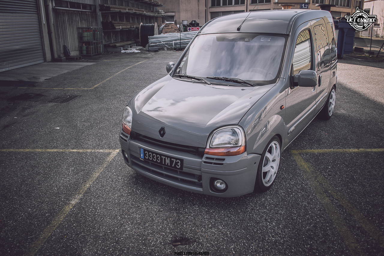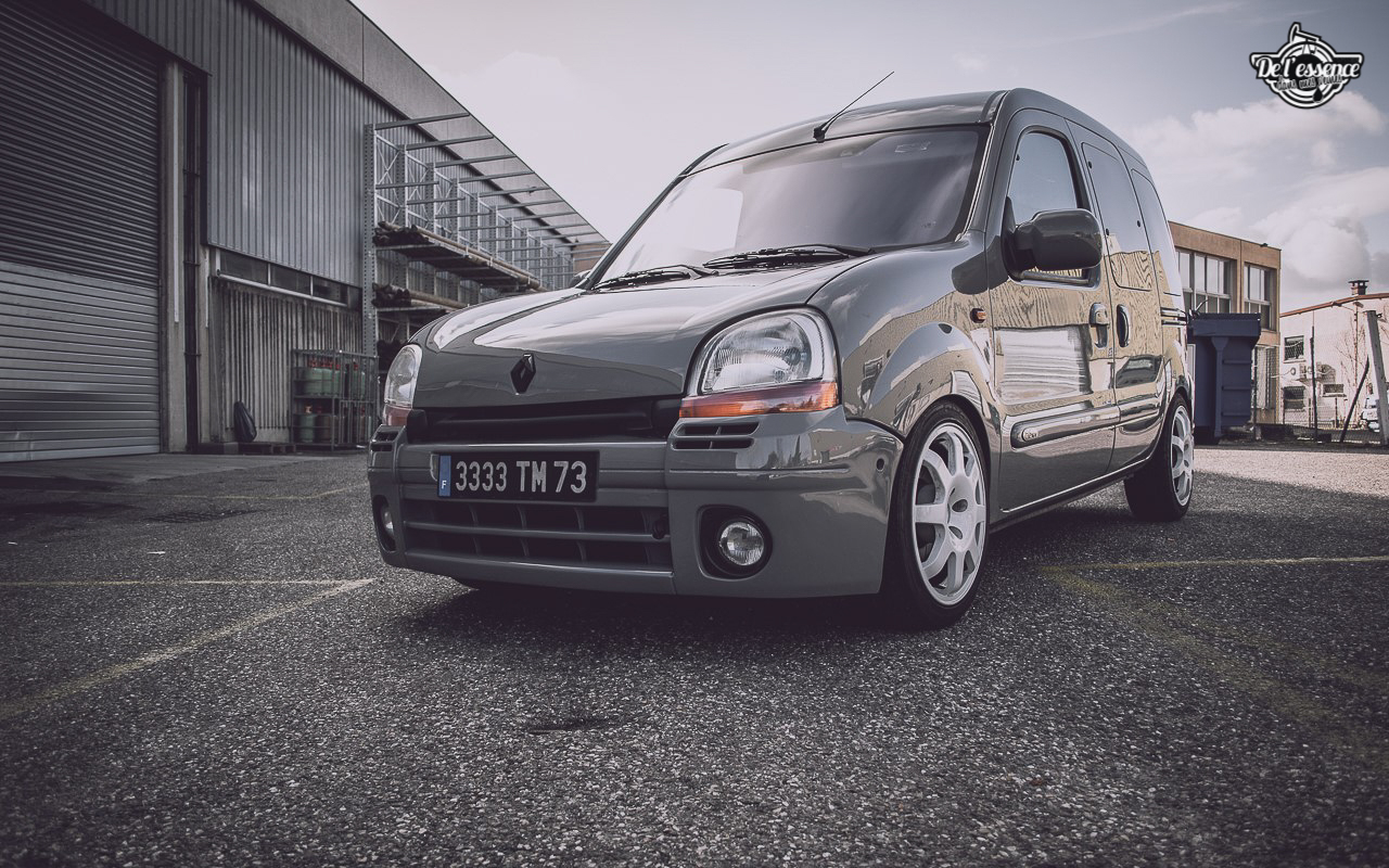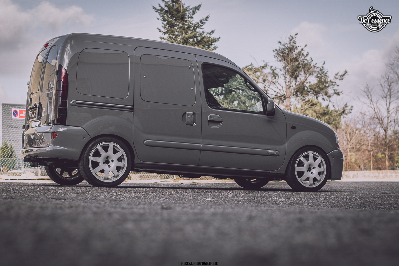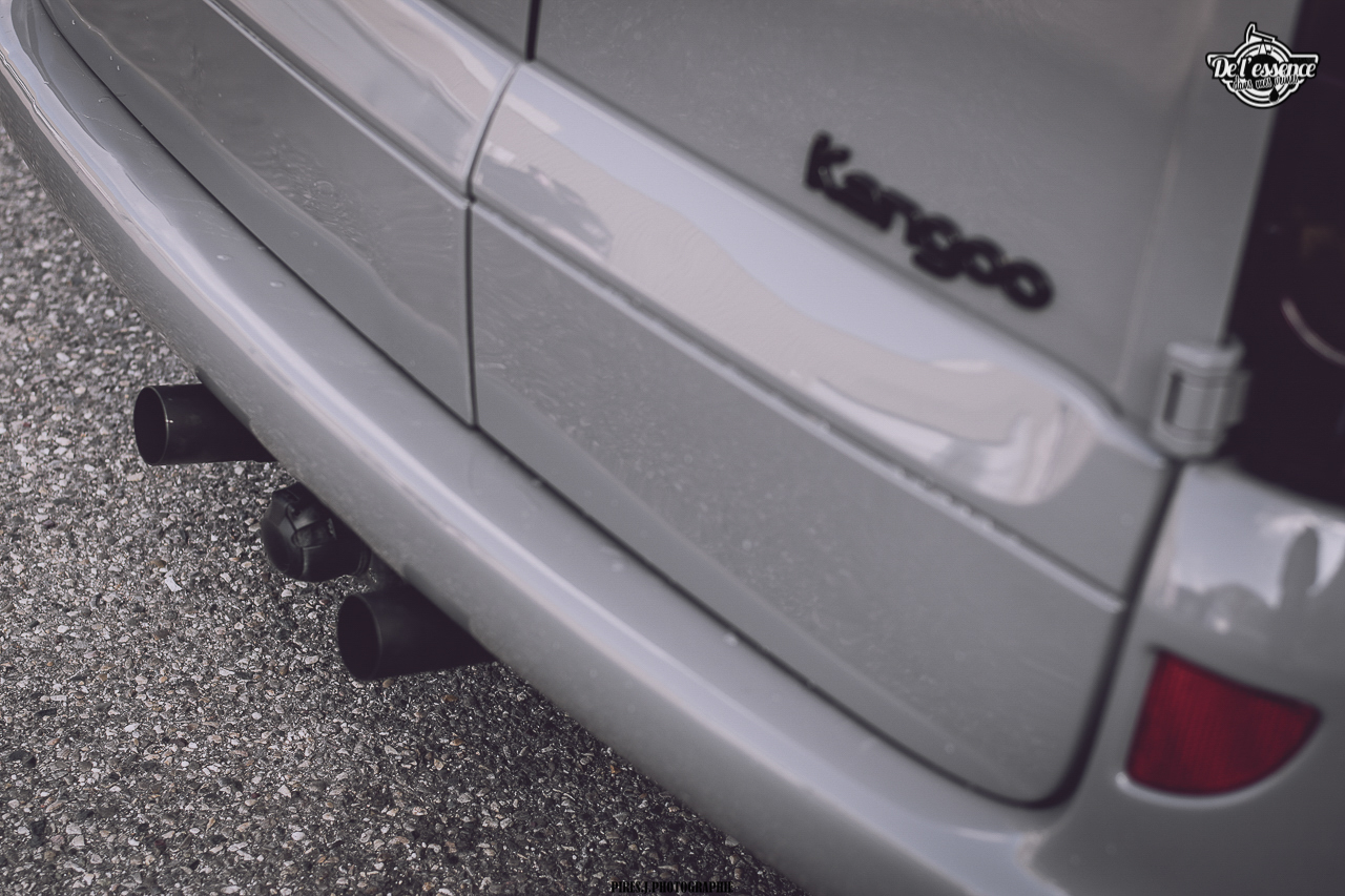 Après, il faut quand même être un peu frappé, mais surtout très talentueux pour se lancer à partir d’un Kangoo. Faut aimer les challenges ! Même si chez De l’essence dans mes veines, on est persuadés qu’absolument toutes les voitures ont leur potentiel à partir du moment où le traitement est fait avec goût et parcimonie. D’autant plus que lorsqu’on part d’une base totalement improbable, et que le résultat est au niveau des attentes, la satisfaction est sans commune mesure, mais aussi surprenant que cela puisse paraître, les réactions sont la plupart du temps hyper positives. Le célèbre : « Ah ouais, finalement ! ». Halala, les clichés et les préjugés sont les pires ennemis de l’homme motorisé !