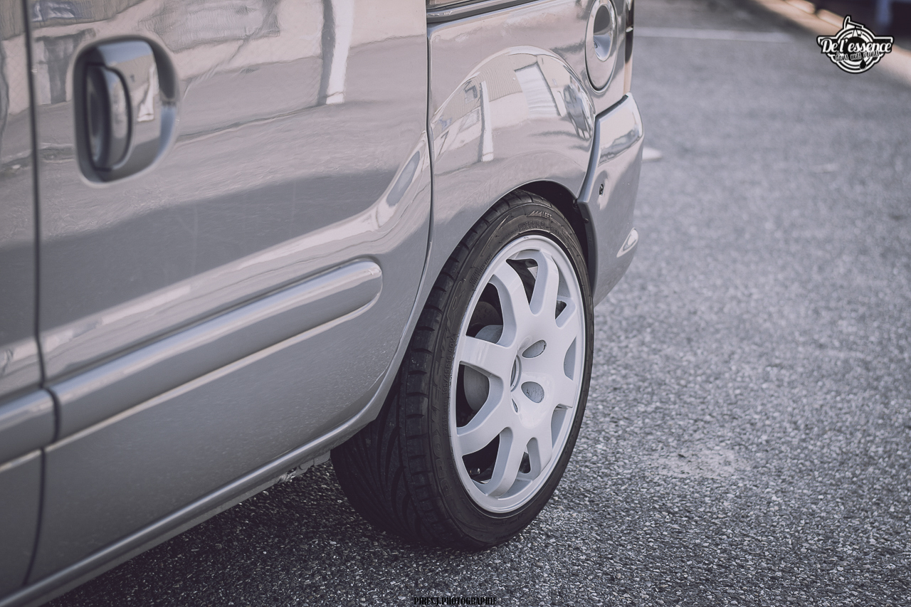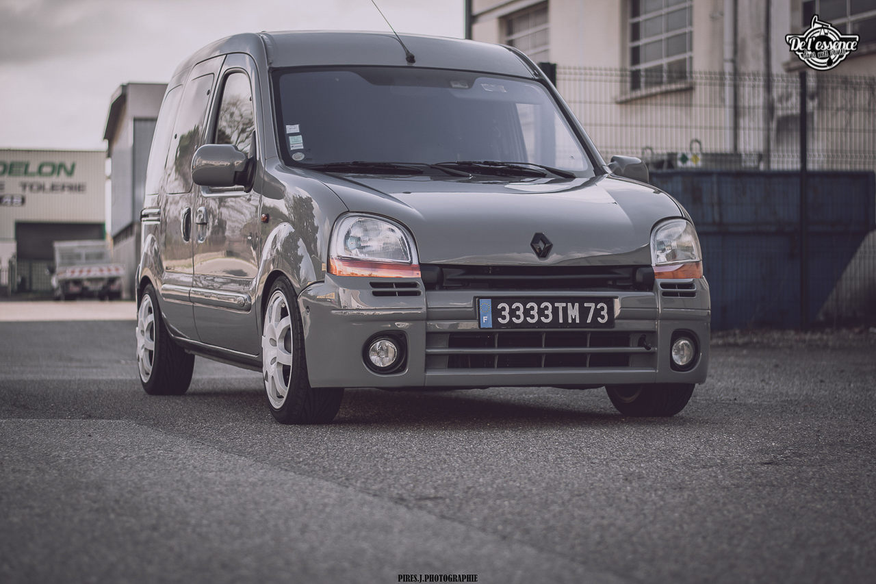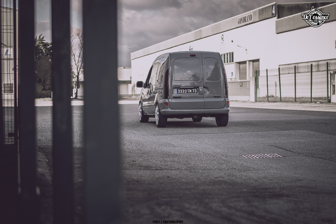 Après, il faut quand même être un peu frappé, mais surtout très talentueux pour se lancer à partir d’un Kangoo. Faut aimer les challenges ! Même si chez De l’essence dans mes veines, on est persuadés qu’absolument toutes les voitures ont leur potentiel à partir du moment où le traitement est fait avec goût et parcimonie. D’autant plus que lorsqu’on part d’une base totalement improbable, et que le résultat est au niveau des attentes, la satisfaction est sans commune mesure, mais aussi surprenant que cela puisse paraître, les réactions sont la plupart du temps hyper positives. Le célèbre : « Ah ouais, finalement ! ». Halala, les clichés et les préjugés sont les pires ennemis de l’homme motorisé !