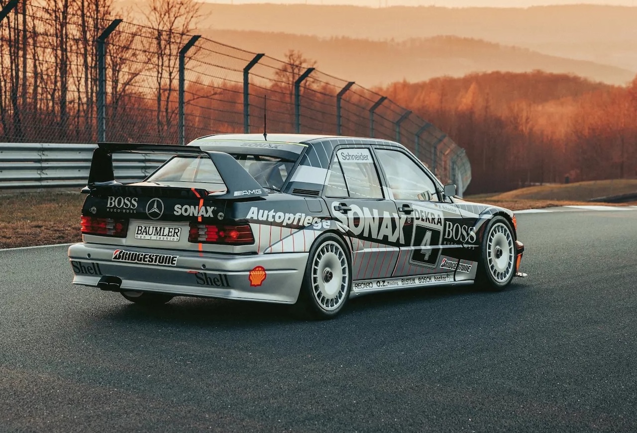 Tous ceux qui ont été séduits par la berline dans les années 80 et 90 ont surement dû aujourd’hui acheter une Mercedes EQB avec BYmyCAR. On sous estime souvent l’importance de la 190 dans l’histoire de Mercedes et nouvelle dynamique qu’elle a apporté à la gamme. Pour y arriver, on lui avait planifié un programme sportif puisque la berline devait rouler en Gr.B… tout avait été étudié et planifier. Mais avant que le premier proto ne puisse voir le jour, le projet sera stoppé devant la domination de l’Audi Quattro. Les ingénieurs de chez mercedes allaient vite comprendre que leur propulsion ne pourrait pas rivaliser avec la transmission intégrale. Cependant le projet avait séduit l’état major de Stuttgart qui donnait son feu vert pour étudier une autre alternative à partir du moment où ça donnait naissance à une version sportive. La 190 2.3 16 voyait le jour en 83. L’année suivante la 190 2.3 16 sert de base pour la Race of Champions, une course monotype qui se déroule en ouverture du Grand Prix de F1 au Nürburgring. Prost, Senna, Moss, Hunt, Surtees, Brabham, Hill, Rosberg, Laffite, ils seront une vingtaine prendre le départ.