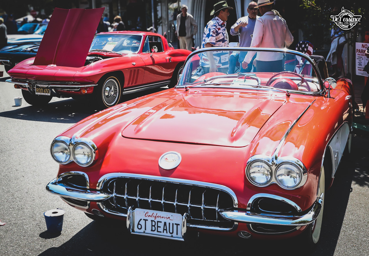 Le Concours avait été créé par Doug Freedman et s’était interrompu à son décès à l’automne 2021. Il fut relancé en 2024 par deux passionnés : George Anderson et Nile Estep. Ils ont fait un travail remarquable, ont du goût, des idées, du talent et ont su fédérer les enthousiasmes. Une équipe de bénévoles, les propriétaires d’automobiles et aussi le public. L’ événement est reparti et est voué à progresser encore et encore. Les autos sont d’une valeur inférieure à celles que nous retrouverons en fin de semaine sur les pelouses du Golf mais déjà de très bon niveau. Cette année les Cobra Shelby et autres Corvette tenaient la vedette. Le public vient en famille passer une bonne journée en toute simplicité, avec décontraction. Il y a aussi trois scènes où les prestations orchestrales s’enchainent. On croise également de nombreux « peintres du dimanche » prêts à immortaliser les Ferrari ou autres Porsche qui jouent aux modèles. C’est simple et chaleureux, c’est bon enfant. Ce n’est pas un concours au rabais c’est un concours sans prétention. Les autos présentes sont impeccablement restaurées. Carmel Concours for a Cause est un événement caritatif mais c’est avant tout un événement à ne pas manquer. Ce sont (et seront toujours) les américaines qui sont en plus grand nombre et l’ on a plaisir à découvrir quelques hot-rods et low-riders dans cette manifestation si sympathique. Ici on est sérieux… sans se prendre au sérieux. Au bout de 2 années CCC a retrouvé son niveau de qualité du temps de Doug Freedman et, pour connaître George et Nile, on peut être sûr qu’ils vont encore considérablement développer l’événement. Un détail qui ne trompe pas; auparavant les visiteurs européens arrivaient en milieu de semaine pour la MCW. Dorénavant ils arrivent dès le lundi afin de ne pas manquer CCC. On entendait beaucoup parler allemand, français et italien dans les rues, c’est un signe qui ne trompe pas. Autre point : les « souriromètres » enregistraient des chiffres records.