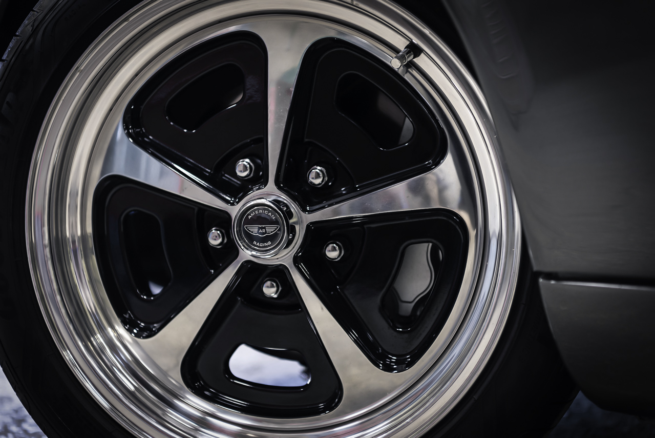 Enfin, le tout a été recouvert d’une teinte Opalescent Gunmetal Grey, clin d’oeil à la Type E, et dans chaque aile on retrouve de magnifiques American Racing en 8 et 9 x 17″ chaussées en Goodyear Eagle F1. Faut reconnaitre que si le choix est osé, ça colle plutôt bien au look de la caisse tout en gardant l’esprit old school de l’anglaise.