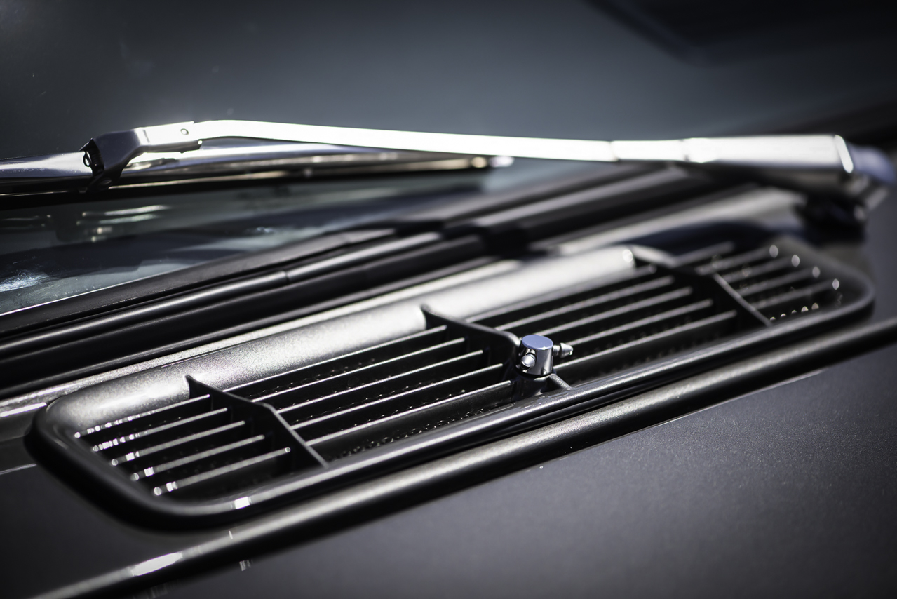 Chez Retropower, on commence toujours les nouveaux projets de la même façon… en l’foutant à poil ! Allez hop, on vire tout. Une fois nue, ils reprennent la caisse de A à Z et en profite pour y caser leur signature. Passages de roues agrandis, jupe arrière lissée, vinyle du toit supprimé et pare-chocs sur mesure. La face avant a elle aussi été rajeunie avec une calandre sur mesure et un grille inférieure de la même veine.