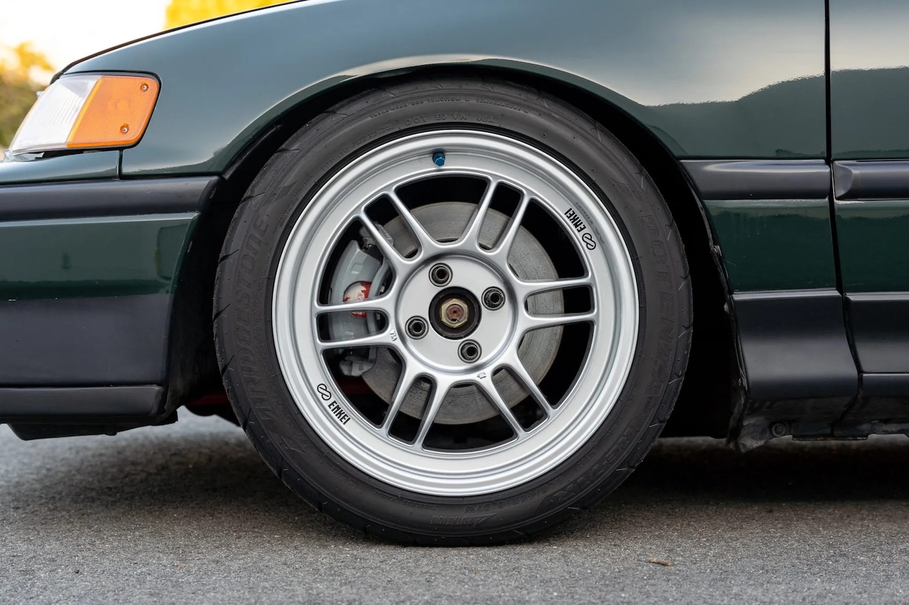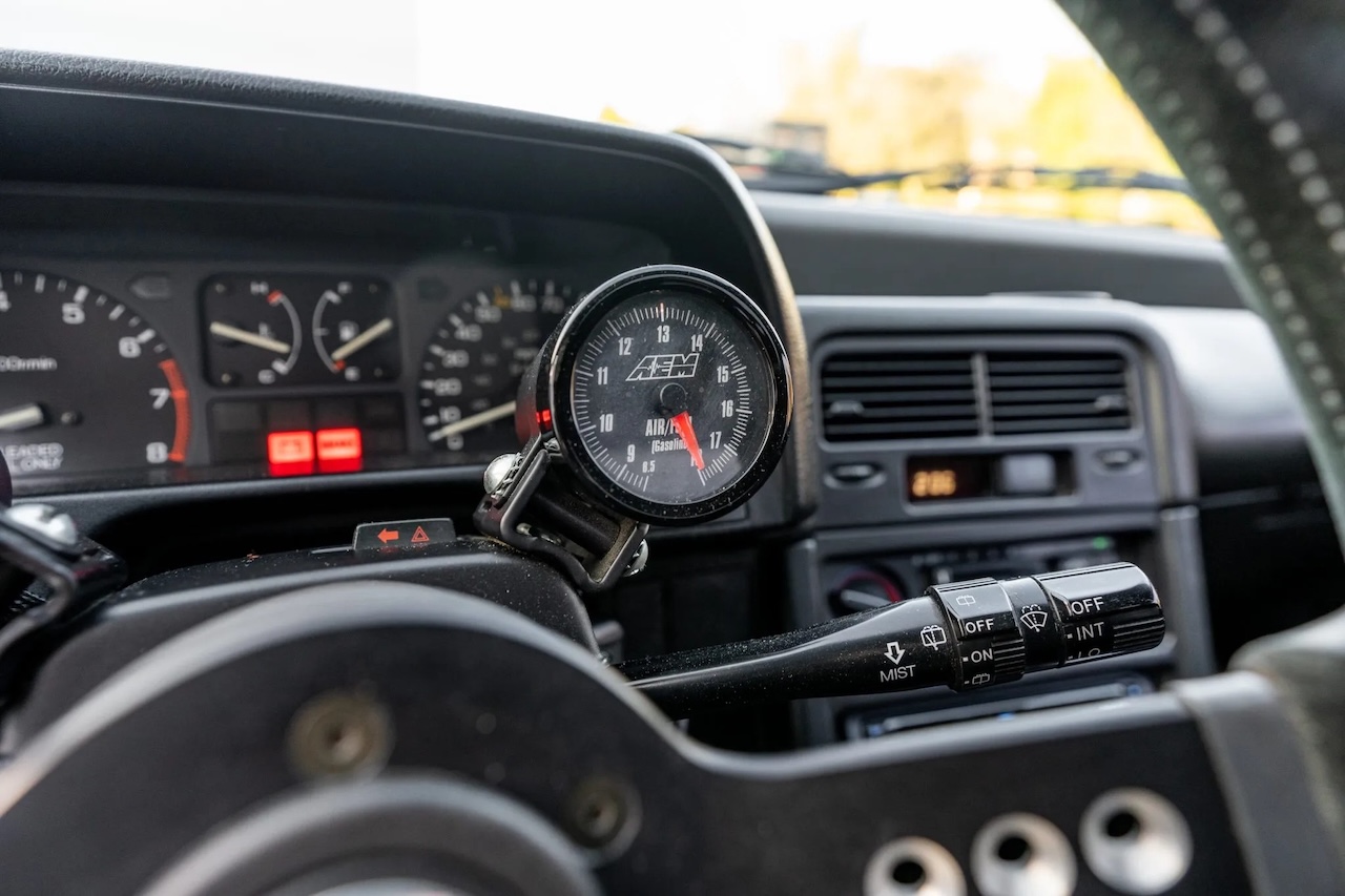 Prenez cette Honda CRX Si de 88. Si elle pose ses roues sur DLEDMV c’est pas pour vous parler de la taille de son coffre ou du moelleux de ses sièges. Nan ! C’est parce que son p’tit 4 pattes se retrouve avec un escargot Garrett GT2560R qui lui souffle dans les conduits. Mais pas que… on retrouve dans et autour du bouilleur, des pistons Vitara avec bielles RC Autoworks, des arbres à cames plus pointus, une wastegate Turbosmart, une dump valve HKS, une admission plus copieuse, des injecteurs Dynamics ID1000 avec rampe et régul AEM, un boitier papillon Skunk2, une gestion Hondata avec ECU P28, un intercooler Mishimoto et radia alu Skunk2, un faisceau OBD1 Rywire, une ligne sur mesure avec collecteur revêtu de céramique associé à un intermédiaire et un silencieux Magnaflow. 250 ch filent maintenant aux roues avant via une boite 5 manuelle refaite par Synchrotech Transmissions qui en a profité pour y greffer un diff’ à glissement limité MFactory, ainsi qu’un volant moteur allégé et un embrayage renforcé Competition Clutch Stage 2.