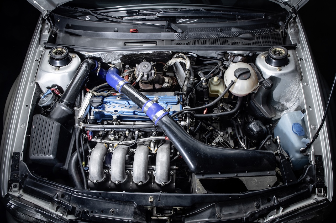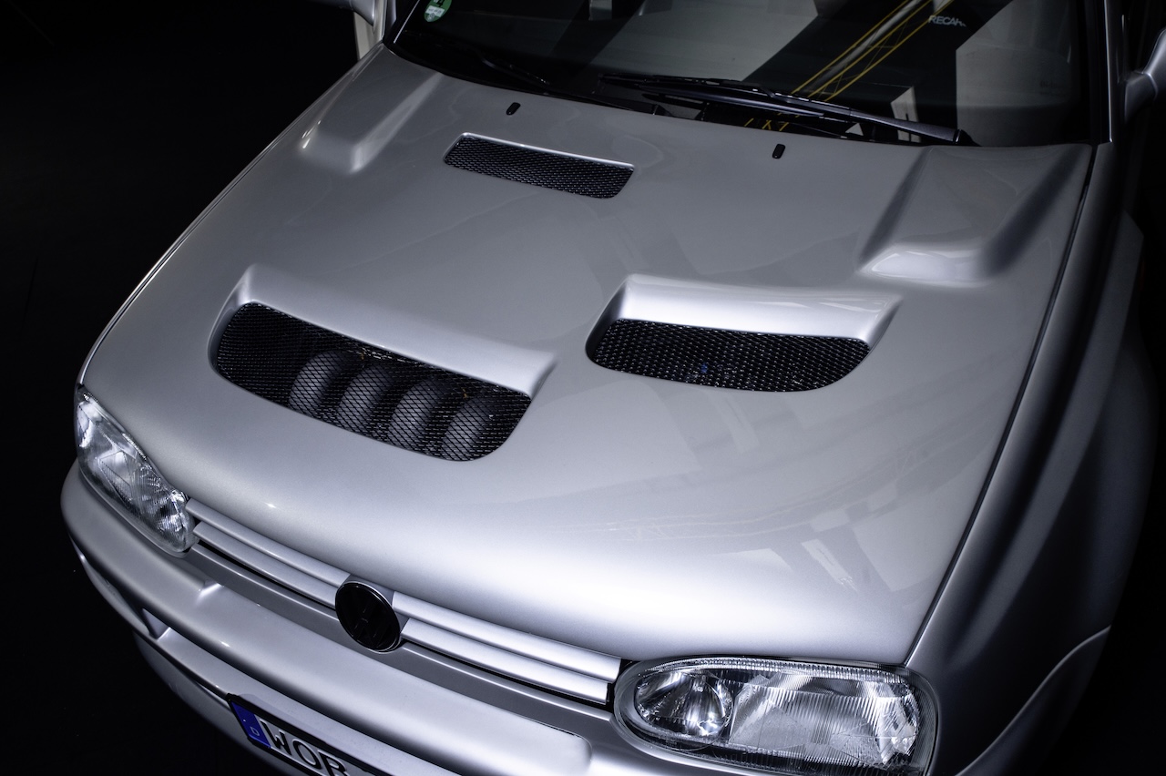 Quand la Golf III débarque en 91, chez VW on a décidé de changer les règles du jeu. Fini le 4 cylindres compressé, la transmission Syncro et les ailes carrées… place au VR6, un V6 « en ligne » à 13° permettant d’être équipé d’une seule culasse pour un gabarit hyper compact. Un 6 cylindres sous le capot d’une compacte, c’est une première. Le succès est au rendez vous et la Golf III VR6 chapeaute la gamme au dessus des GTi et GTi 16 toujours au catalogue.