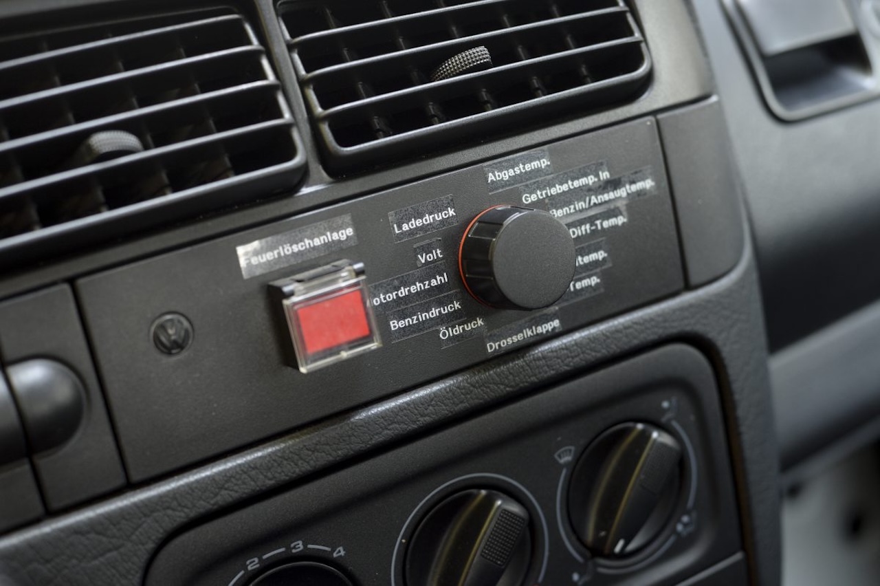 En 92, VW Motorsport se retrouve donc avec le projet ambitieux de développer la Golf A59, ou plutôt, une Golf III Gr.A… pour y arriver, ils vont se faire aider par l’équipe de Schmidt Motorsport qui avait déjà fait des miracles sur l’Audi V8 DTM. D’ailleurs pour le moteur, ils n’ont pas repris le 1984 cm3 de la GTI 16 mais un 1998 cm3 développé spécifiquement chez Schmidt. Bloc alu, ensemble mobile forgé, turbo Garrett T3, culasse aux p’tits oignons, refroidissement optimisé, gestion Bosch Motronic pour 275 ch et 370 Nm dans la version civile, sachant qu’en version course, le bloc est capable d’aller chercher les 400 bourrins. Pour la transmission, la boite 6 manuelle envoie les watts aux 4 roues motrices avec différentiel à glissement limité central et arrière. Bien entendu les trains roulants sont revus, élargis et passent en double triangulation à l’avant et multibras à l’arrière, suspensions plus raides et freinage upgradé. Affichant 1350 kg, la Golf A59 était capable d’accrocher les 270 km/h et de poutrer le 0 à 100 en 4,2 secondes.