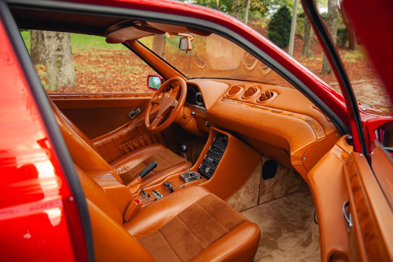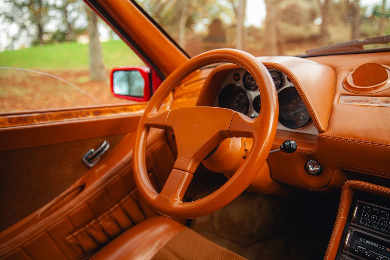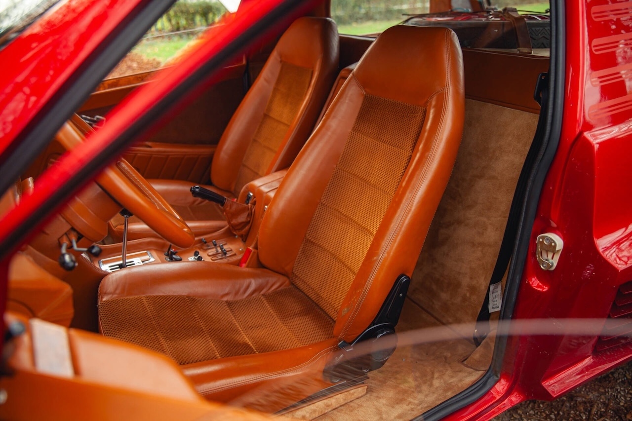 L’habitacle aussi a largement pioché dans la sportive italienne. Le tableau de bord est incliné et modifié pour se marier avec une large console centrale équipée d’une chaine Hifi et d’un ordinateur de bord. Les panneaux de portes viennent aussi de la 308 tout comme les sièges, entre lesquels trône le célèbre levier de vitesse et sa grille. Tout ce qui peut l’être est tendu de cuir caramel et de moquette crème. La finition est superbe, à rendre jalouse la Ferrari donneuse d’organe !