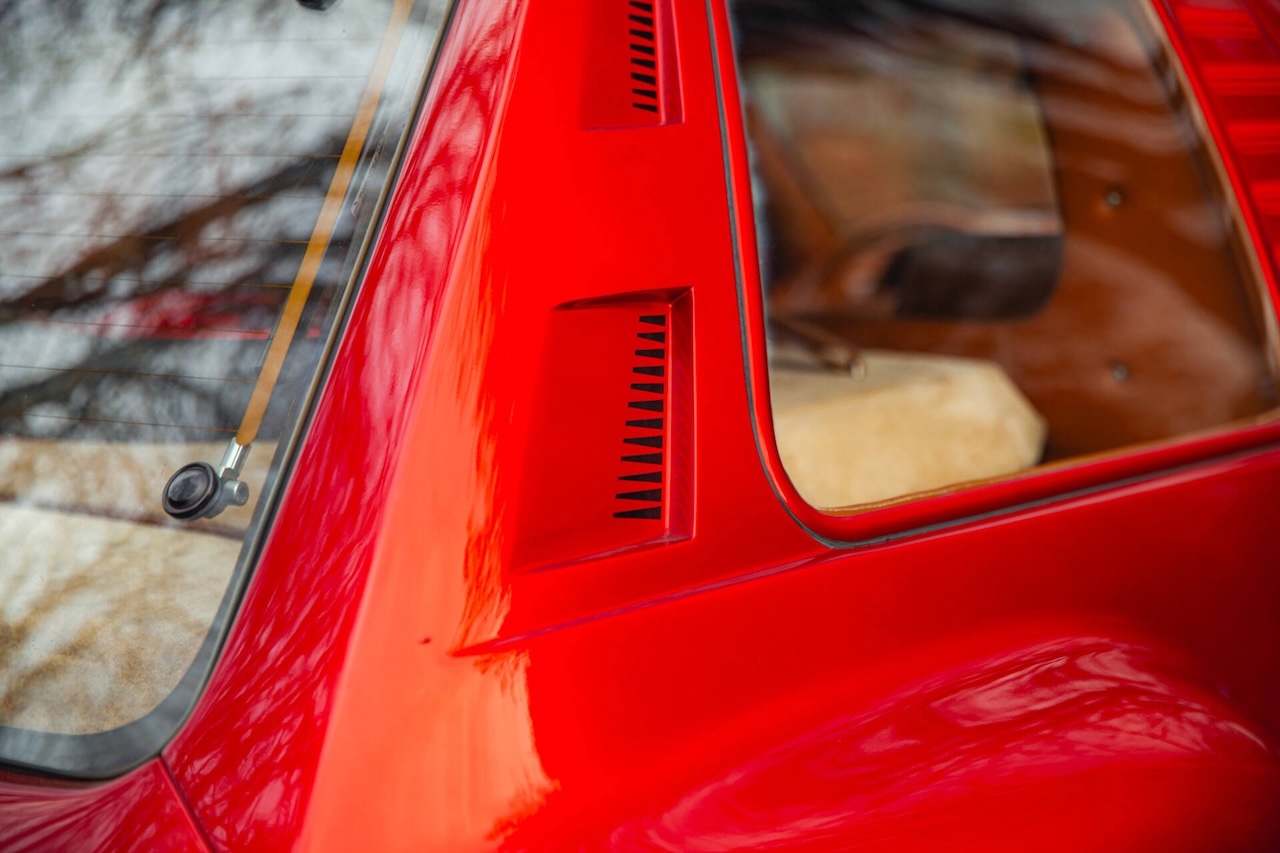 Au niveau du style, on rappelez qu’on est en 82… La calandre est à lames horizontales (signatures Sbarro), la peinture mise sur un dégradé qui part du blanc au rouge, de l’avant vers l’arrière, qui se termine sur un hayon dont la vitre peut s’ouvrir indépendamment.