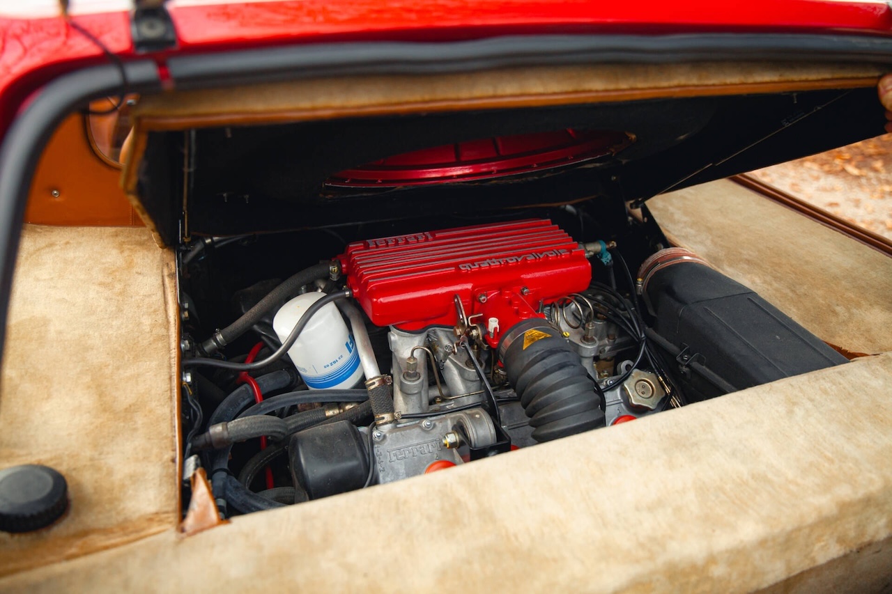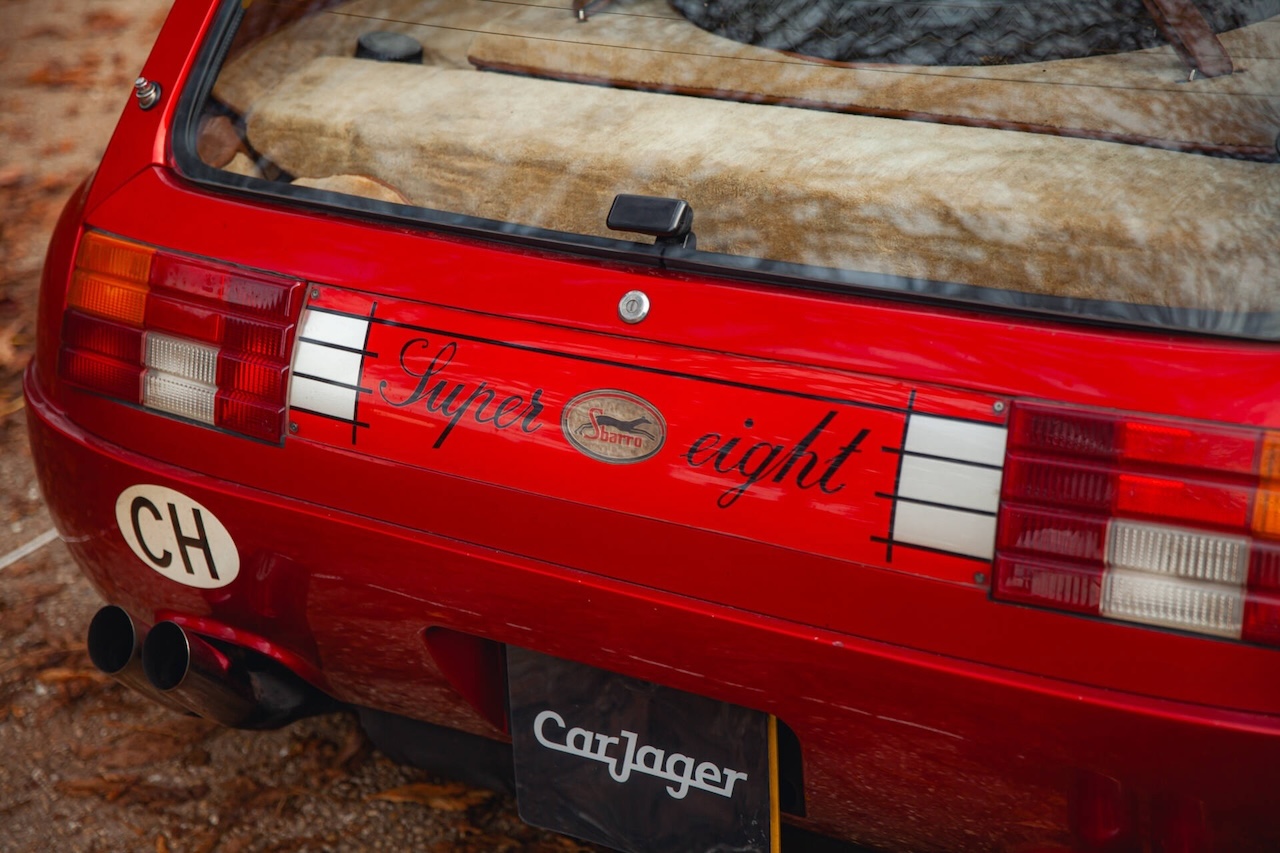 Ce coup ci, la base mécanique est plus cohérente et exploitable. L’équipe de Sbarro est partie d’une Ferrari 308. Le châssis a été modifié, afin de pouvoir conserver et adapter les trains roulants et les freines. Le V8 de 3.0 l a gardé sa place en position centrale arrière et en y étant, il a embarqué la boite 5 avec lui. V8… 8… Eight… Super Eight… Pas plus compliqué que la Super Twelve en fait !